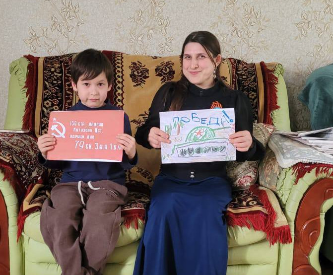 Подопечные отделения приняли участие в создании фото семьи с детским рисунком «Знамя Победы».