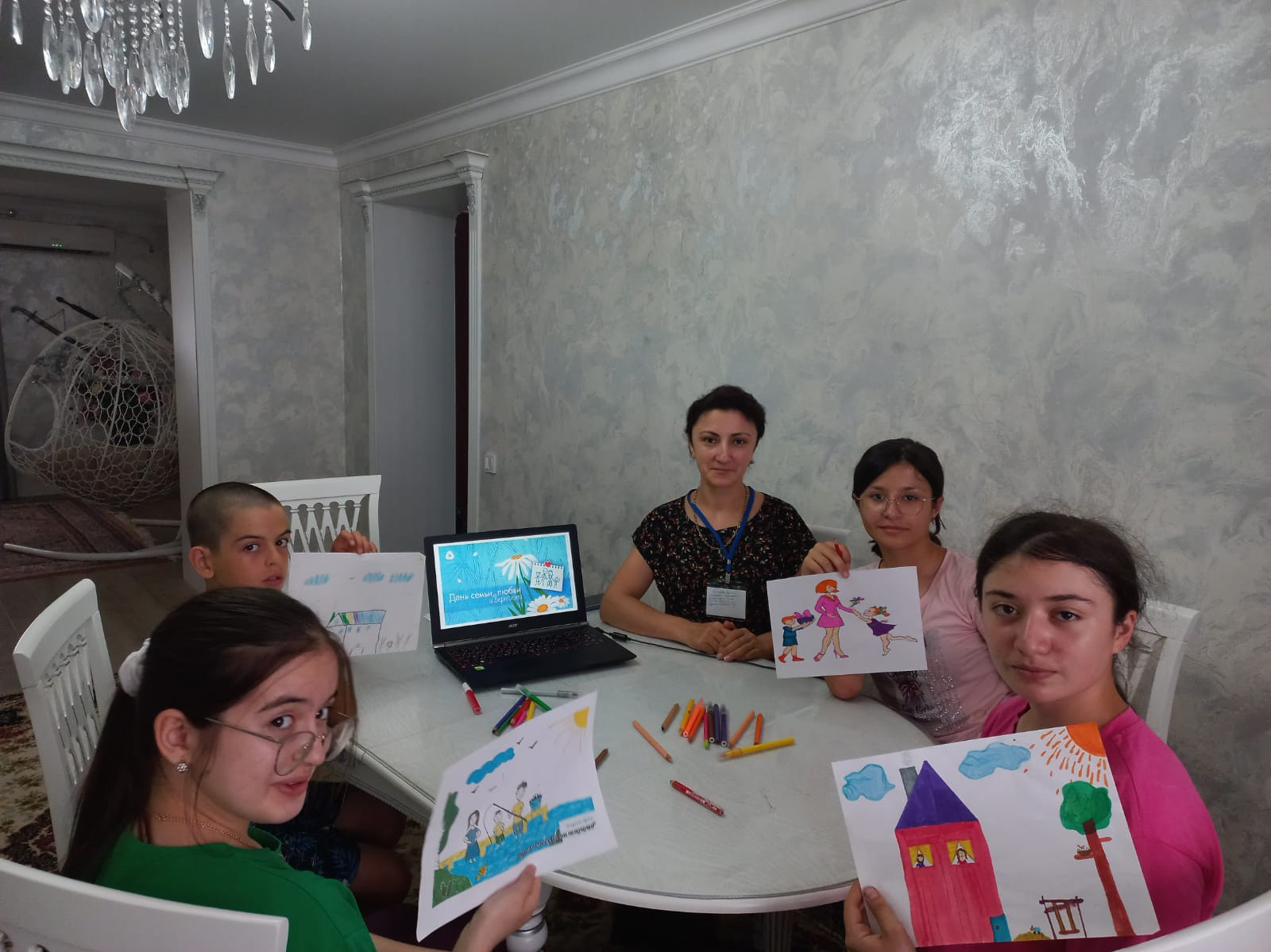 Дети с большим энтузиазмом нарисовали яркие и трогательные рисунки, изображая свою семью, родителей, братьев и сестер, любимых домашних питомцев. Каждый рисунок был наполнен теплотой и любовью.
