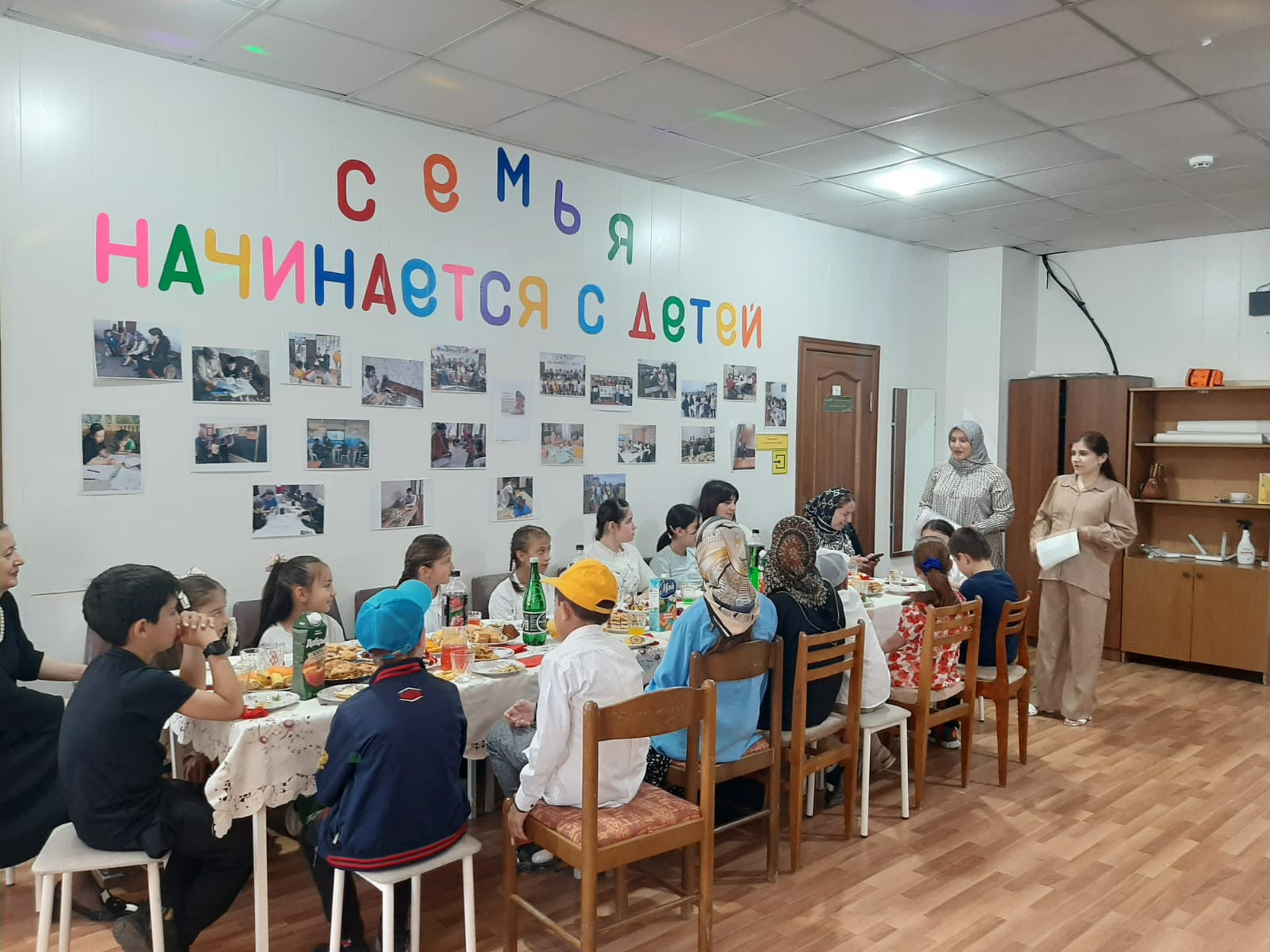 Организацией мероприятия занимались заведующие отделения семьи Абакарова К.Р., Мусаева С.М. и специалисты. В нём приняло участие 20 детей и 7 родителей. Зал был красиво оформлен, а на праздничном столе гостям было предложено вкусное угощение.