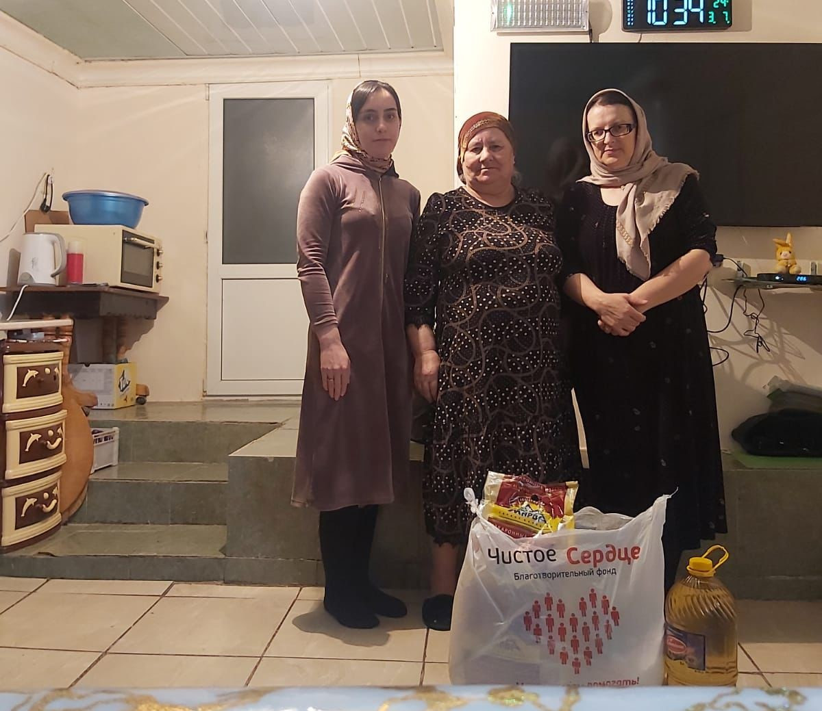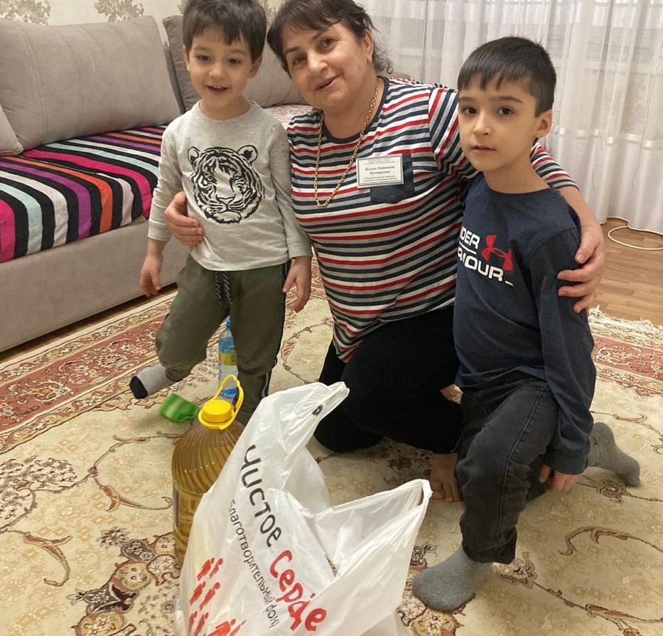 Эта помощь состояла в предоставлении продуктовых наборов, которые были предоставлены благотворительным фондом "Чистое сердце".