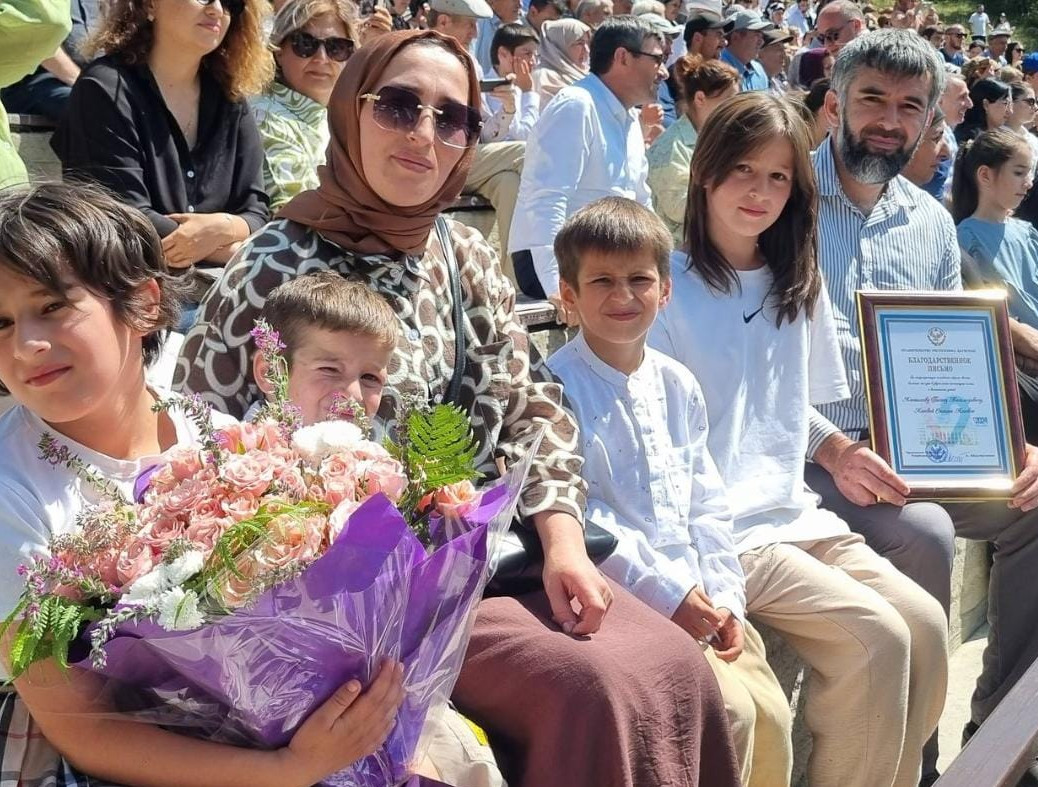 Благодарственное письмо Правительства РД за популяризацию семейного образа жизни, большие заслуги в укреплении института семьи и воспитании детей из рук премьер-министра республики получила также многодетная семья Алишиховых из с. Уркарах Дахадаевского района
