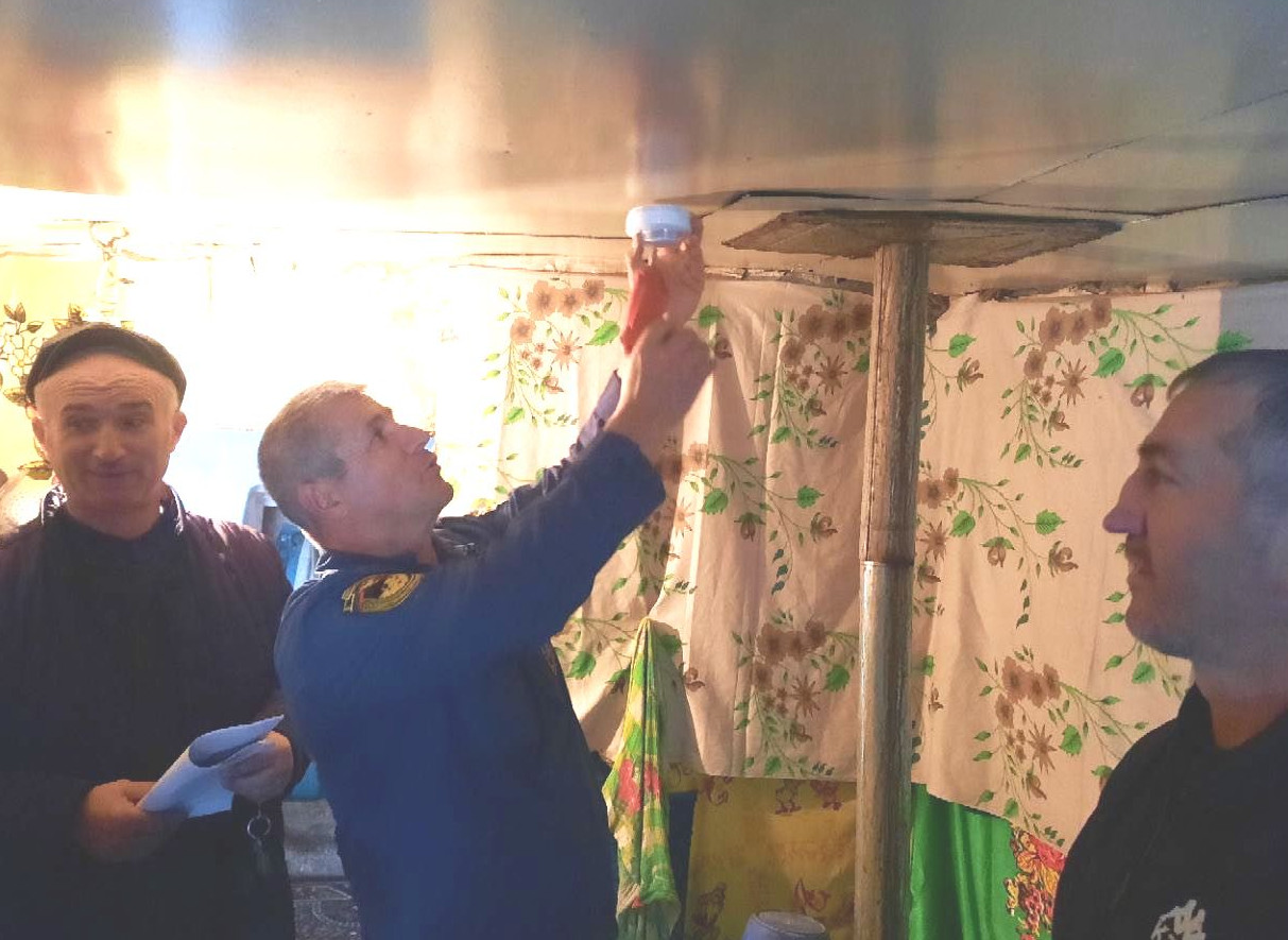 Специалисты Центра соцобслуживания Дахадаевского района принимают участие в мероприятиях по установке пожарных извещателей в домах подопечных