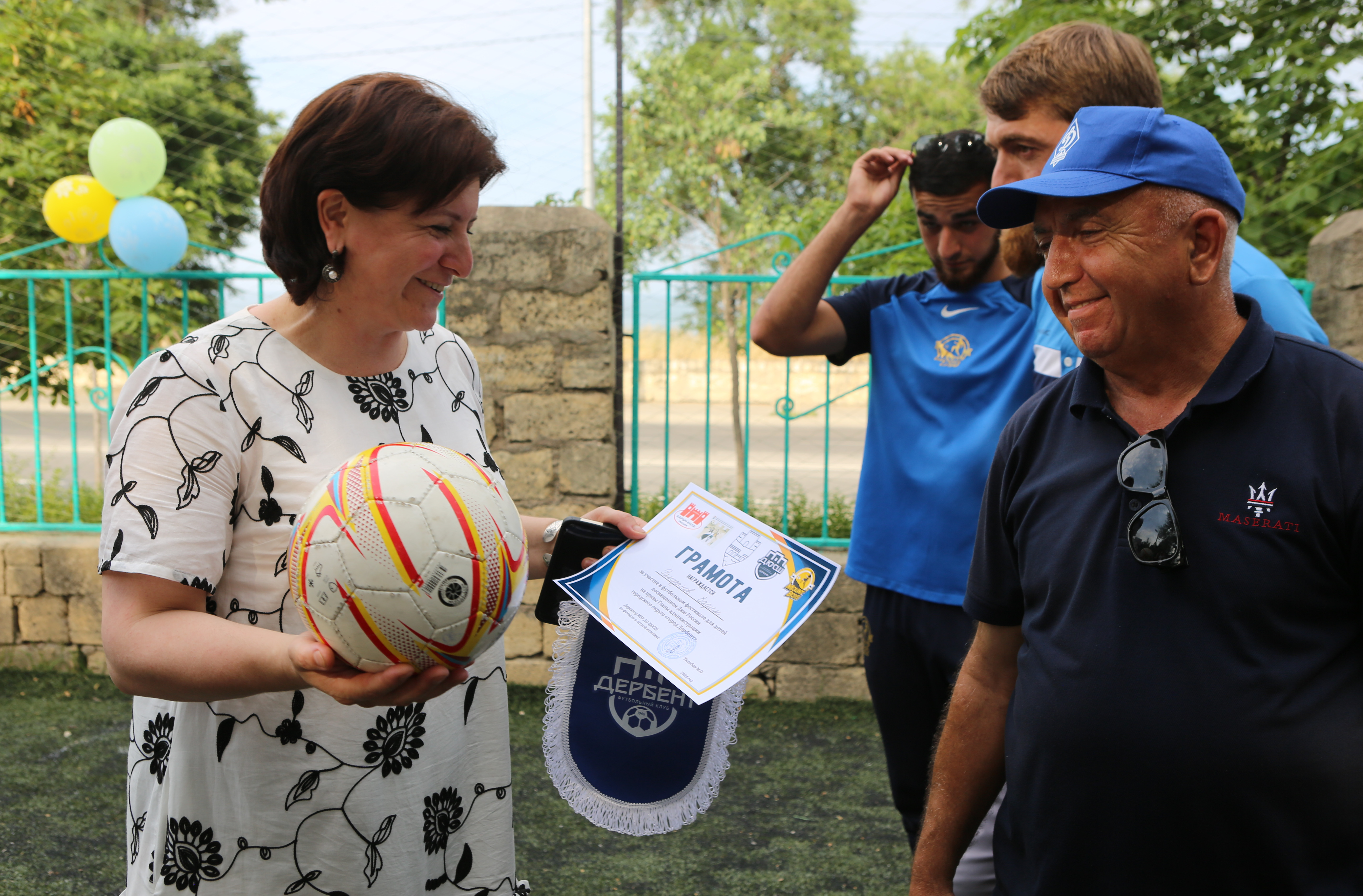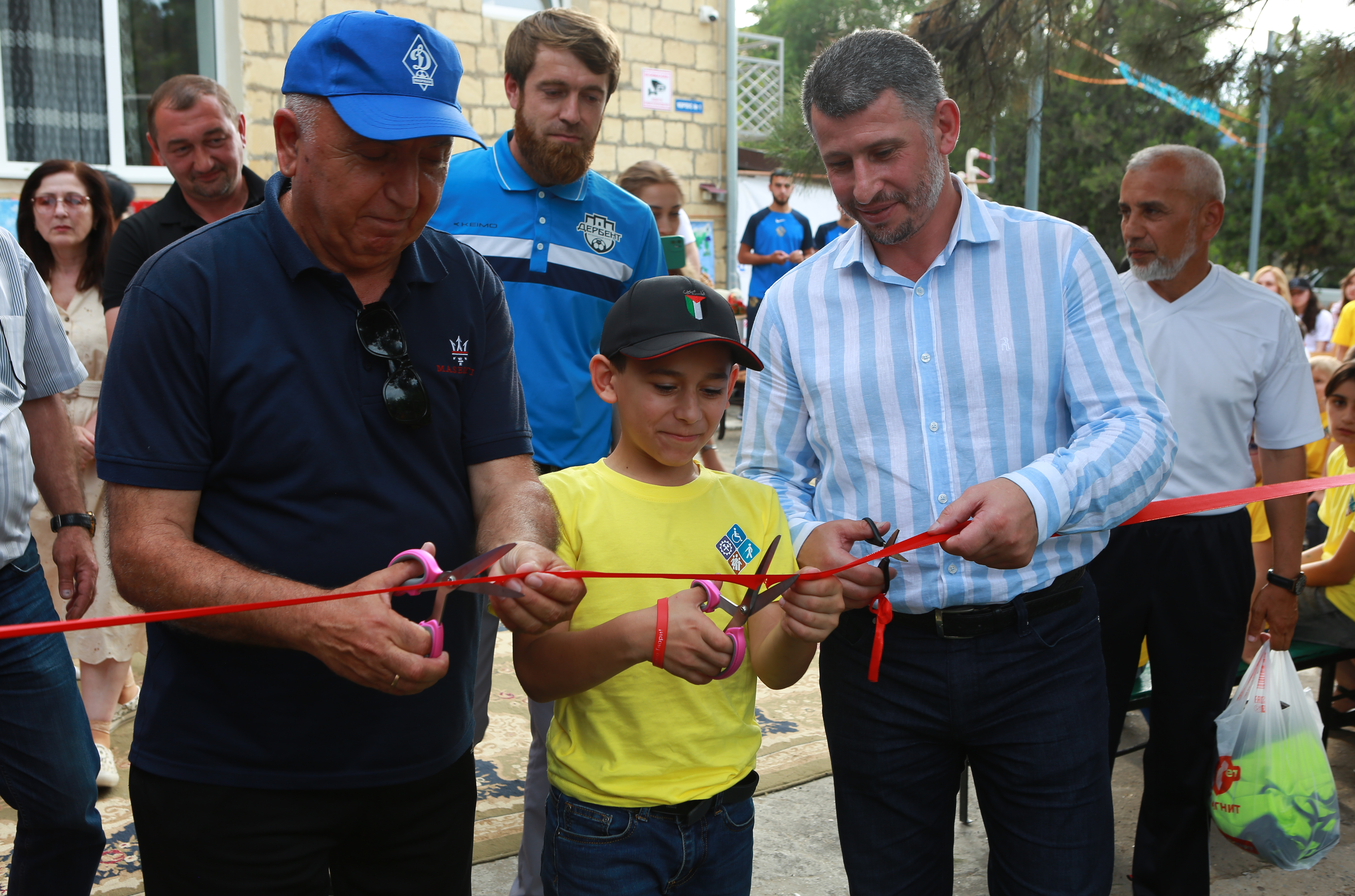 Право разрезать ленту открытия новой площадки было предоставлено Рзаеву Н.А., Абаеву М.А. и воспитаннику Центра Гаджиеву Мухамеду. После открытия состоялся мачт по мини-футболу между командой воспитанников Центра, членами футбольной команды «Дербент» и ветеранами футбола. По завершению игры каждому ребенку были вручены грамоты и памятные подарки.