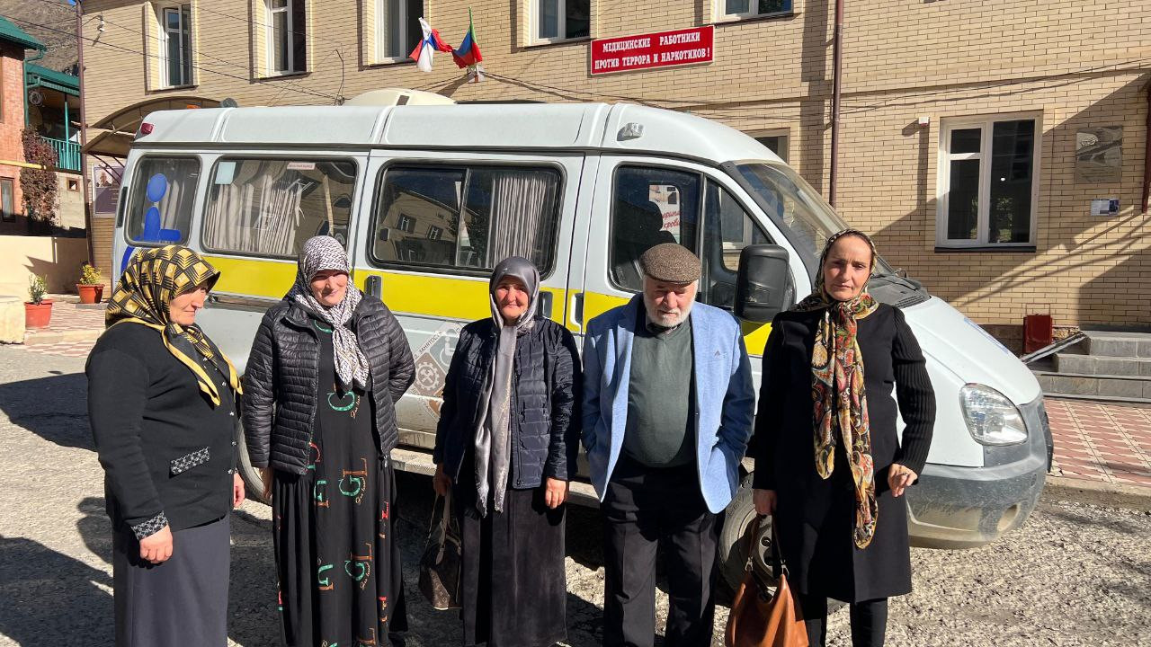 За октябрь месяц 2023г. в соответствии с Планом реализации мероприятий по старшему поколению в рамках программы нац. проекта "Демография" в медучреждение Цумадинского района мобильной бригадой в рамках программы были организованы 2 выезда в села Хонох и Хварши в ходе которого были доставлены 16 человек.