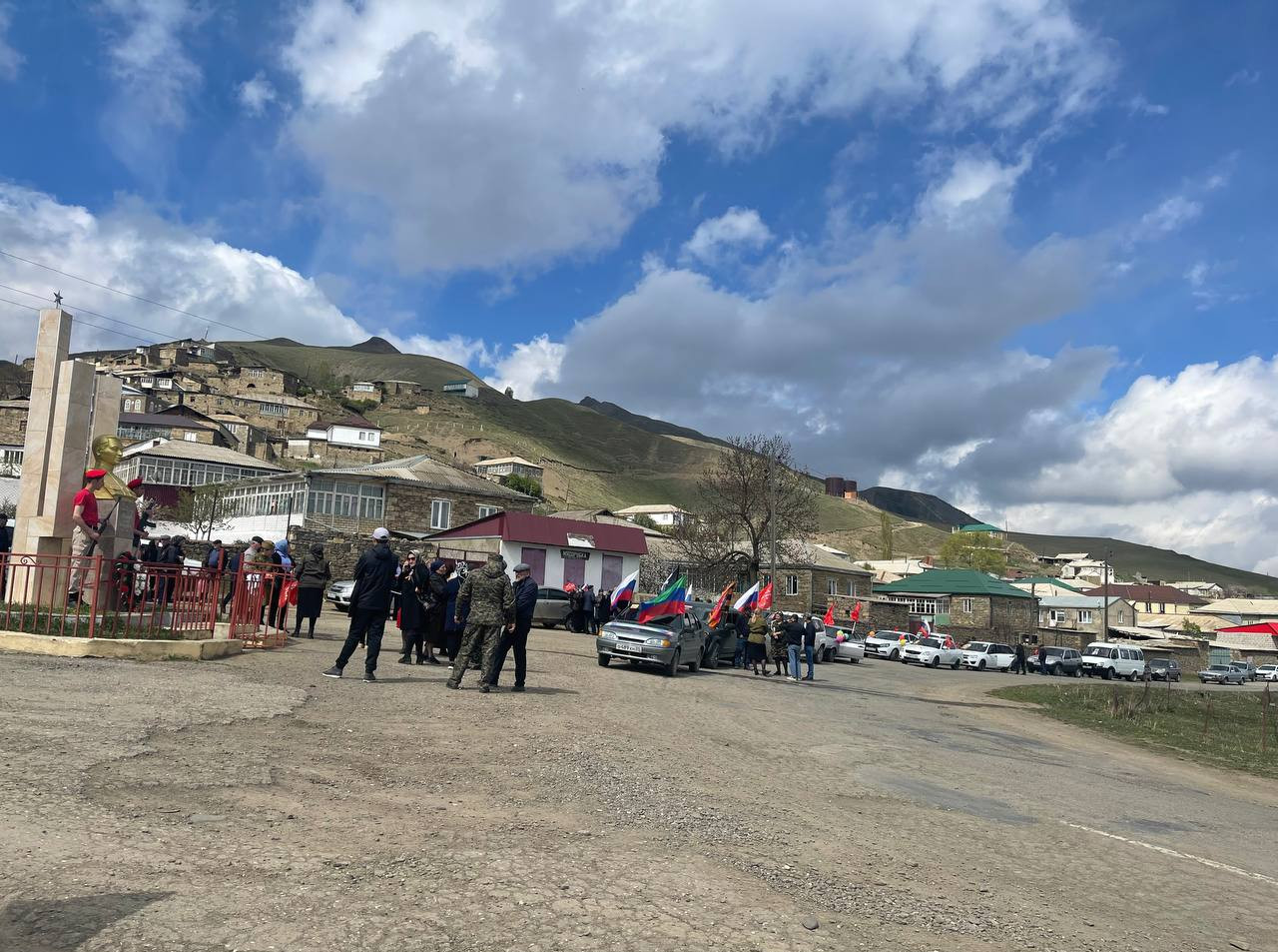 Праздник начался с возложения цветов к бюсту Героя Советского Союза - Цахаю Макаеву в селе Кая. Далее автоколонна с фотографиями ветеранов и участников СВО переместился по традиционному маршруту – с селения Кая в райцентр Кулинского района.