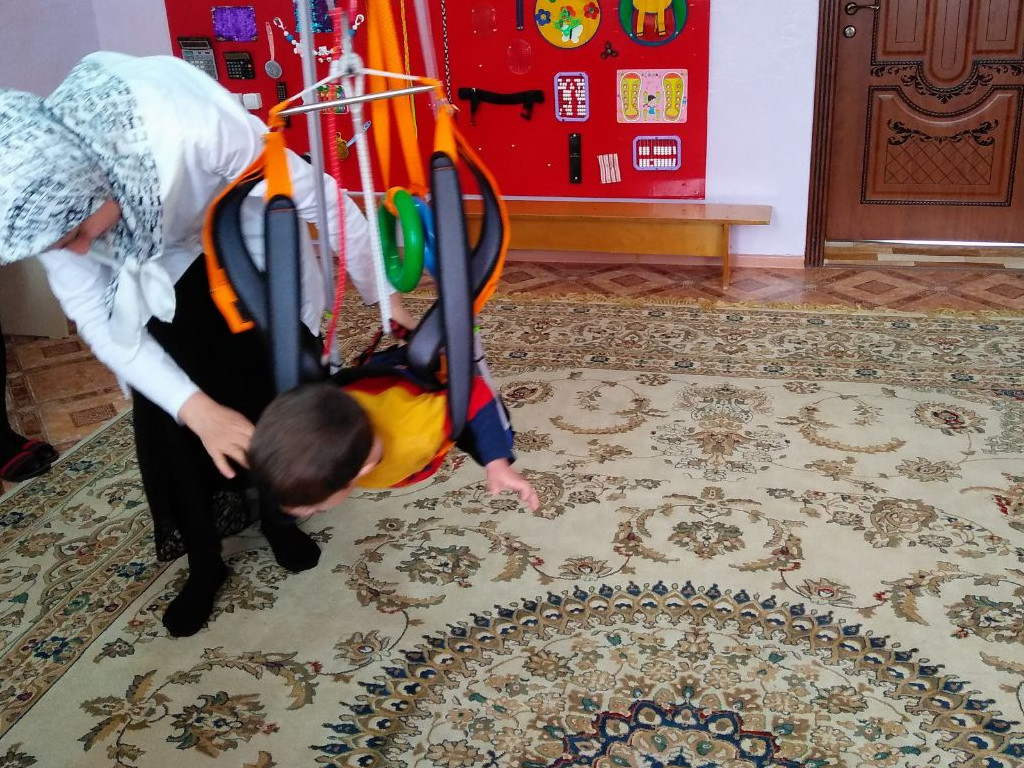Занятие ЛФК с тренажером Гросса проводит инструктор Урайзат Бексултанова.