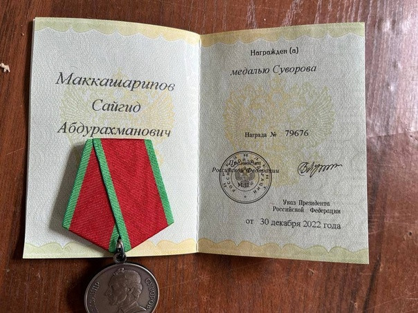 Уроженец Хунзахского района Маккашарипов Сайгид Абдурахманович награжден медалью Суворова