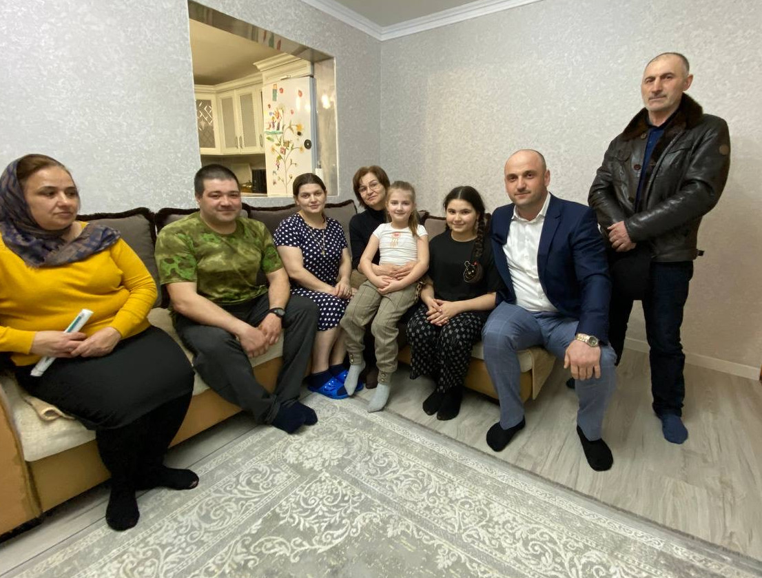 По поручению Главы Дагестана Сергея Меликова,22 февраля 2023г в преддверии празднования «День защитника Отечества» директор управления социальной защиты населения в муниципальном образовании «город Южно-Сухокумск» Д.К.Джарулаев совместно с директором ГБУ РД КЦСОН в МО «город Южно-Сухокумск»С.С.Курбанчиевой, представителем администрации ГО «города Южно-Сухокумск»Р.Х.Курбанов посетили 10 семей участников СВО. Материальная единовременная помощь в размере 10000т.руб. была оказана семьям СВО,при содействии депутата Народного собрания РД от города Южно-Сухокумска Махачева Далгата Гаджиевича.