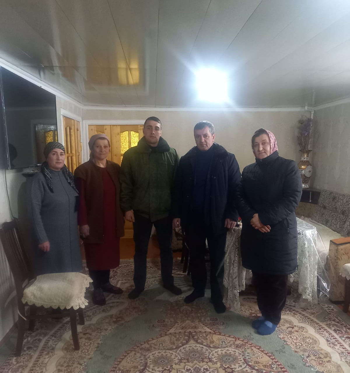 Сегодня в День защитника Отечства и.о.директора Н.М.Умаров и соц.работницы навестили семьи погибших военнослужащих в СВО на Украине и семьи мобилизованных военнослужащих в специальной военной операции на Украине. В этот праздничный день семей также навестили глава МО "Хивский район" Я.А.Ярметов, начальник УСЗН Р.Ю.Юсуфов, депутат НС РД Мирзабалев А.,представитель главы регионального парламента Омаров Н. Всех поздравляли с праздником, пожелали крепкого здоровья, мира и скорейшего возвращения участвующих военной операции на Украине домой к своей семье и родным живыми и здоровыми.