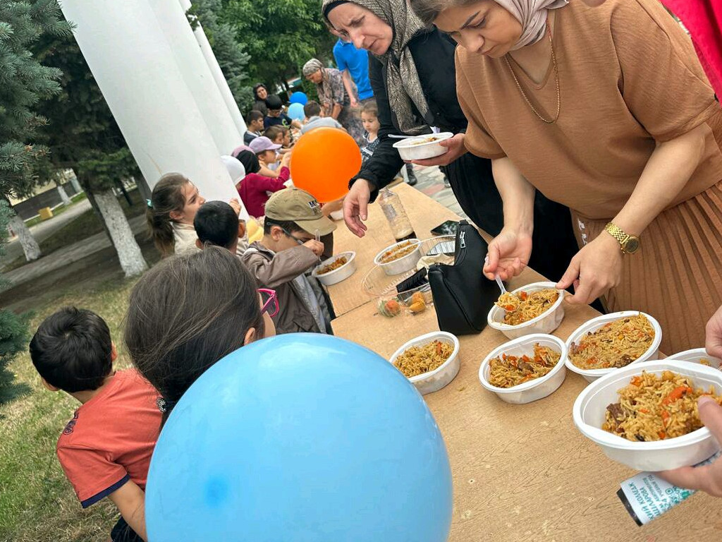 Перед администрацией были развернуты палатки с демонстрации продукции малых предпринимателей. Подопечные центра с большим удовольствием ознакомились с производством в родном крае.