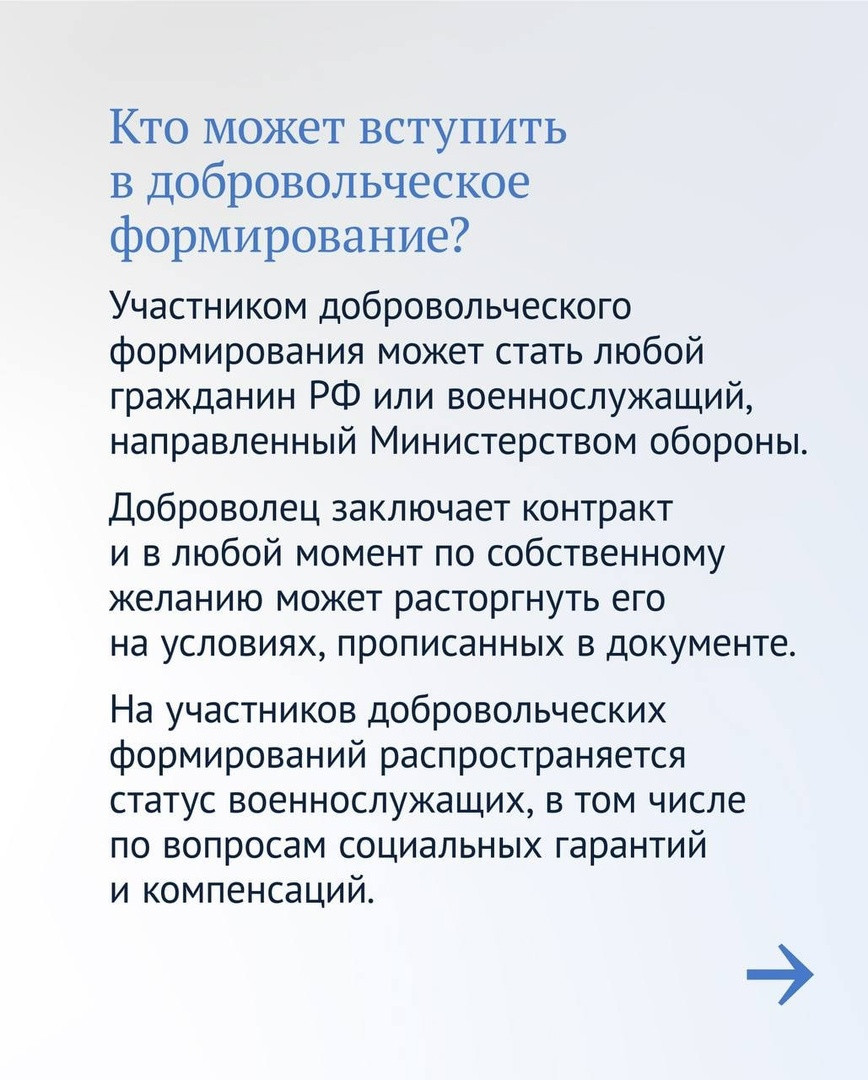 Подробнее о том, кто может стать участником этих формирований и какие льготы им положены, — в карточках.