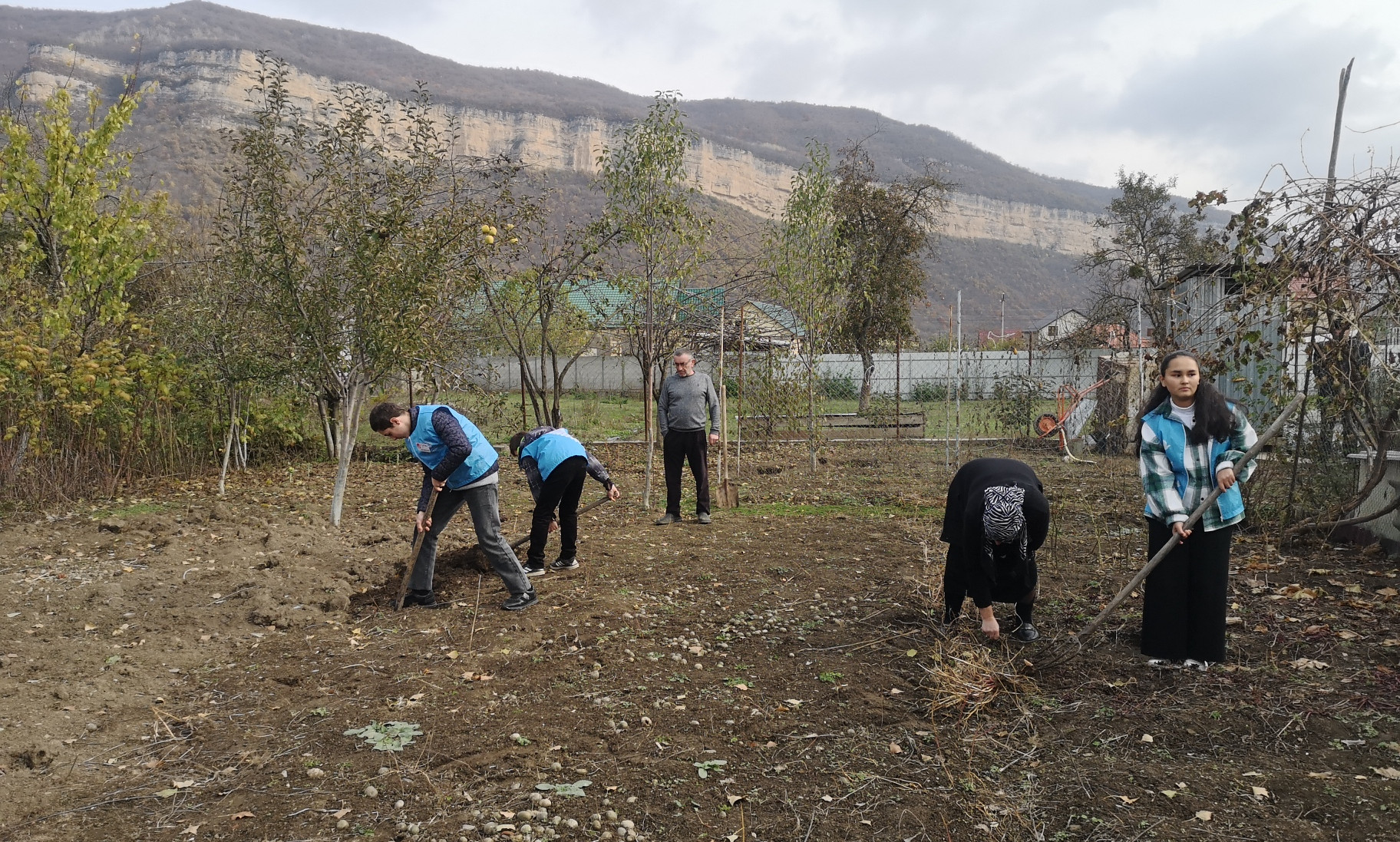 Далее волонтеры Хивской СОШ навестили Шахсинова М.А. , инвалида по зрению, для оказанию ему бытовых услуг. Ребята выполнили работы в огороде , выполнили прополку огорода и очистили приусадебный участок от мусора и засохших листьев.