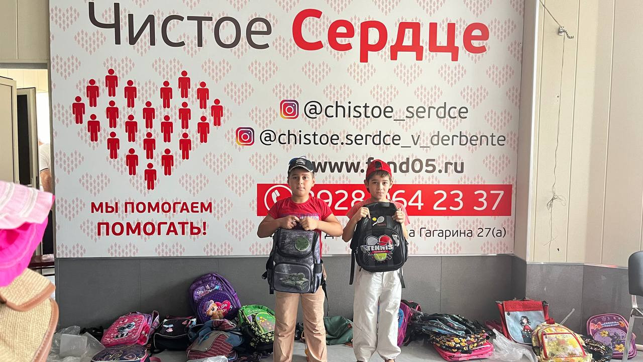 В рамках ежегодной благотворительной акции «Собери ребёнка в школу”, проводимой благотворительным фондом «Чистое сердце» детям из 13-ти малообеспеченных и многодетных семей, состоящих на обслуживании в Комплексном центре социального обслуживания населения г. Дербент оказана помощь в виде комплектов школьной одежды и портфелей с канцелярскими принадлежностями.