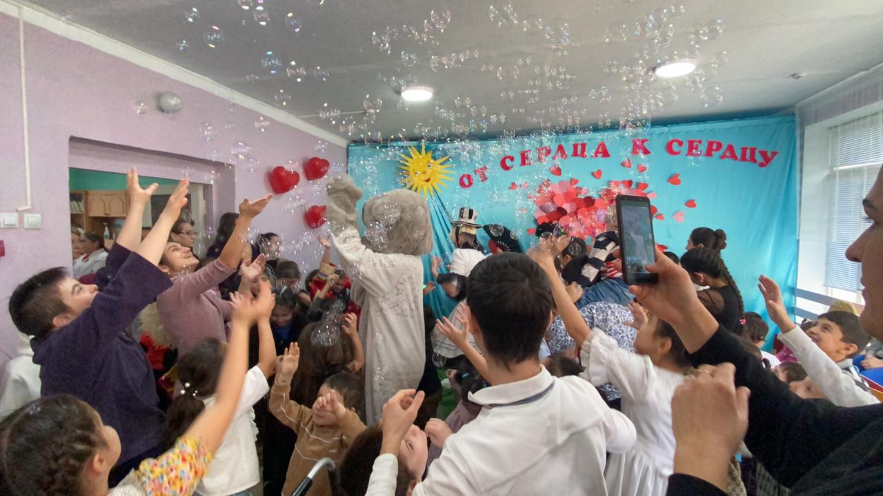 Сегодня гостей и воспитанников Центра ждала развлекательная программа. Дети пели рассказали стихи, танцевали. Особую атмосферу создали наши верные друзья - воспитанники ДДТ под руководством Мусаевой Самиры. Весёлые конкурсы, игры и инсценировки порадовали всех без исключения. Изюминкой программы стало Шоу мыльных пузырей, которое создало особую праздничное настроение. В завершении мероприятия всё дети и гости получили подарки