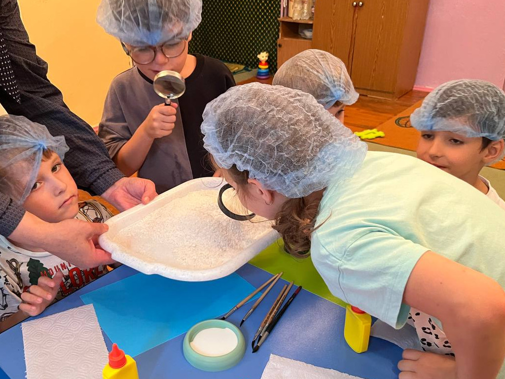 На занятии дети почувствовали себя учёными, изучающими мир соли.