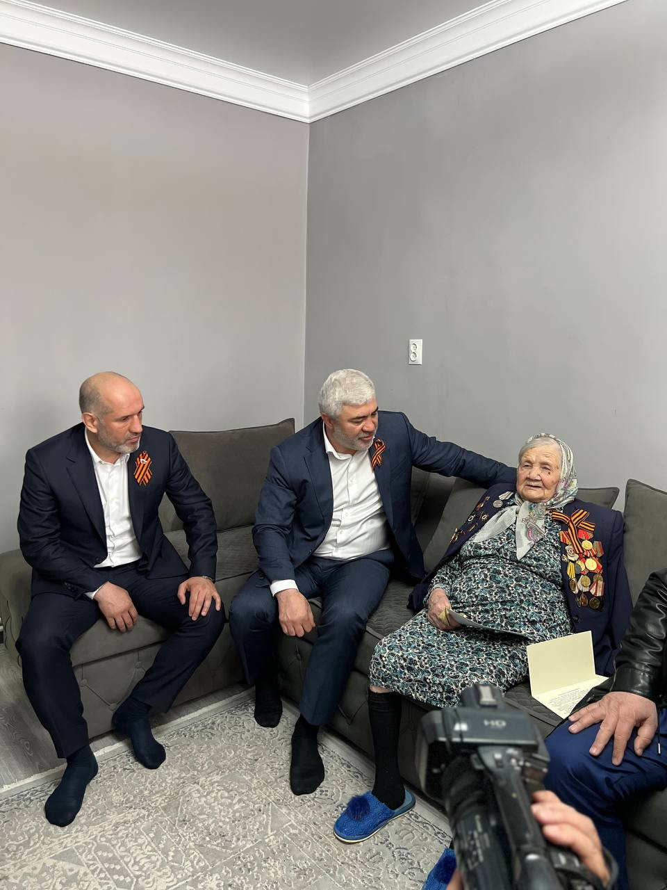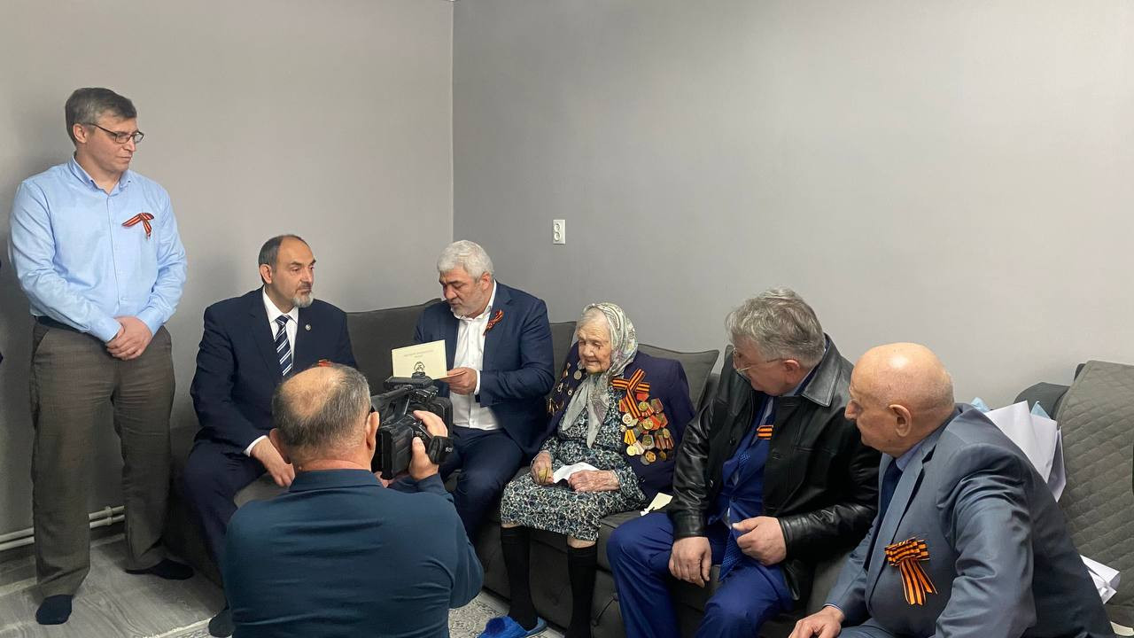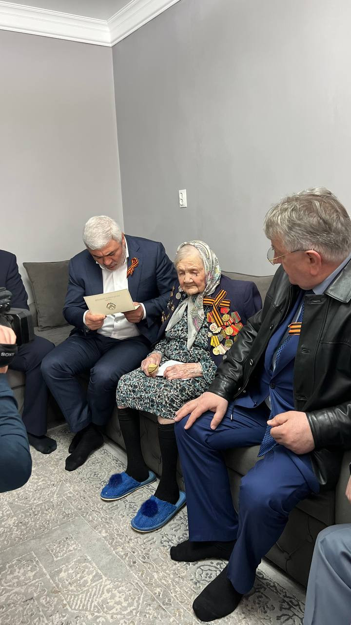 В преддверии празднования 79-й годовщины Победы Великой Отечественной войны с поздравительной открыткой от главы Республики С.А. Меликова, поздравить Белялову Галину Меджидовну пришли Директор Управления социальной защиты населения «города Буйнакск» Рашад Рашадов., И.о зам.начальника Юсуп Гаджиев., И.о начальника отдела социальной поддержки Управления социальной защиты Рукият Мамаева., Депутат Народного Собрания РД Ильяс Мамаев., глава ГО «город Буйнакск» Исламудин Нургудаев., Министр образования РД Яхья Бучаев и так же Председатель Буйнакского городского Собрания депутатов, Заслуженный врач РД Магомедхан Даитбегов.