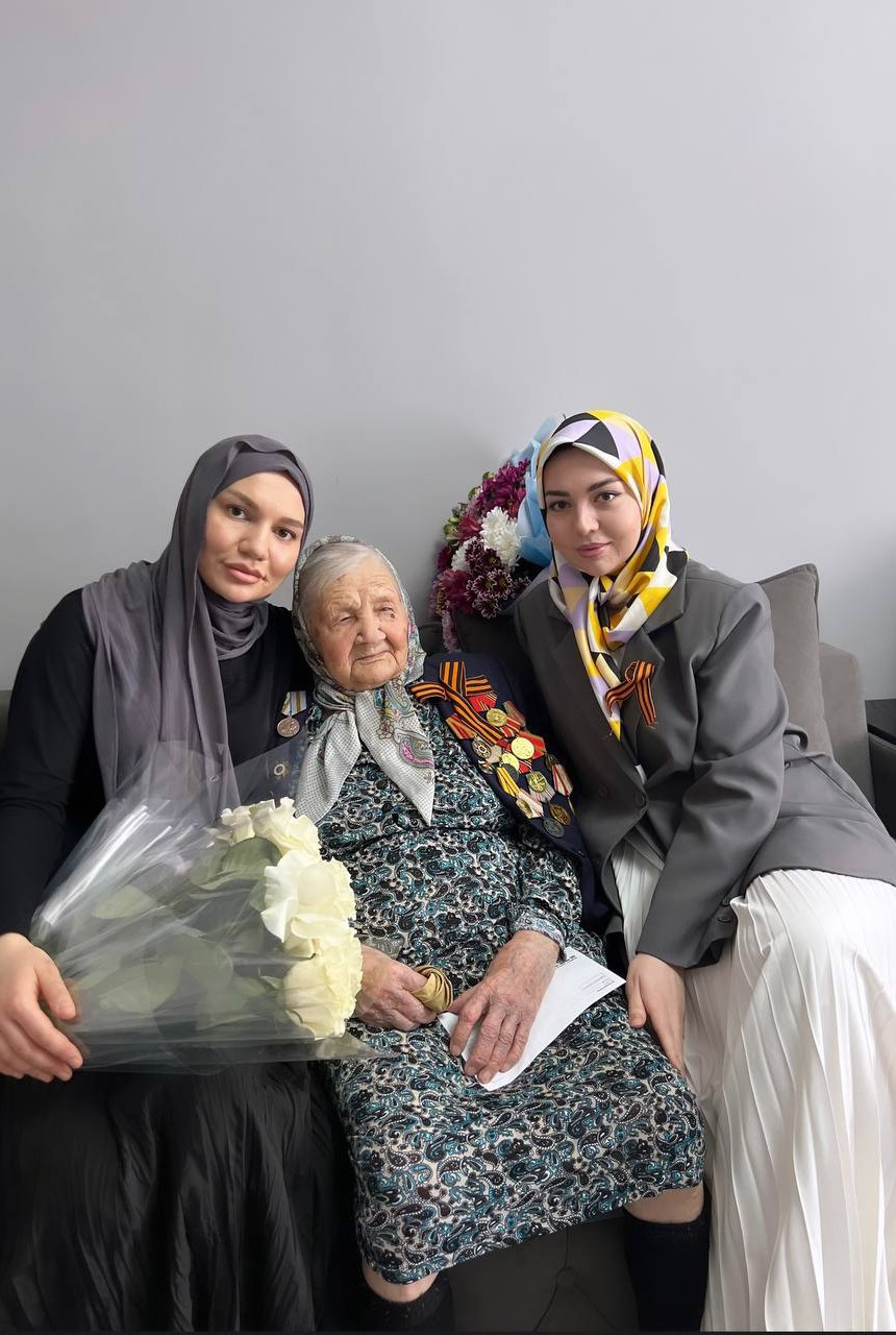 В преддверии Дня Победы поздравили Ветерана ВОВ Белялову Галину Меджидовну.
