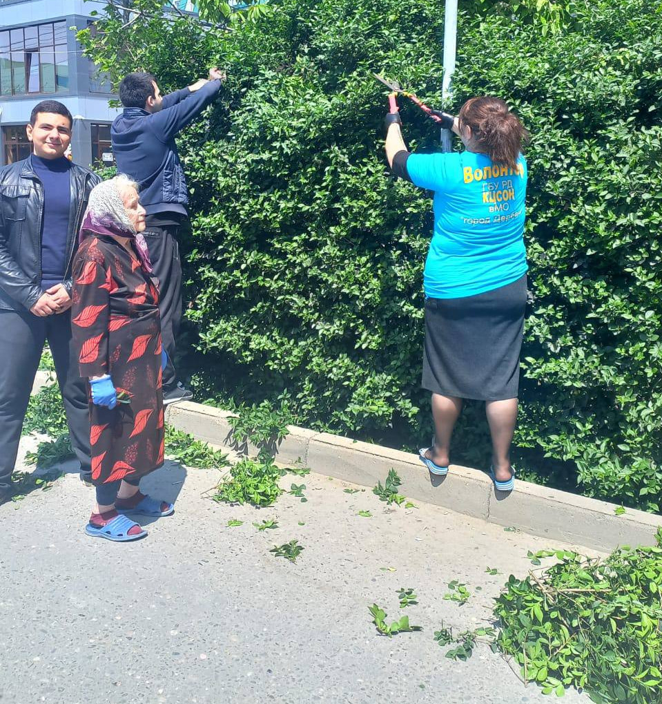 В преддверии праздника 9 мая студенты волонтерского корпуса НКАА, НКАД «Российского союза молодежи» и студенты- волонтеры железнодорожного колледжа совместно с социальным работником КЦСОН отделения №1 Касимовой Бриллиант ,оказали помощь вдове участника ВОв - Арутюнян Лидие Васильевне, проживающей в городе Дербенте, в перекопке земельного участка, а также в приведении порядка придомовой территории ( вскопаны огороды, обрезаны кусты и покрашены ограды).