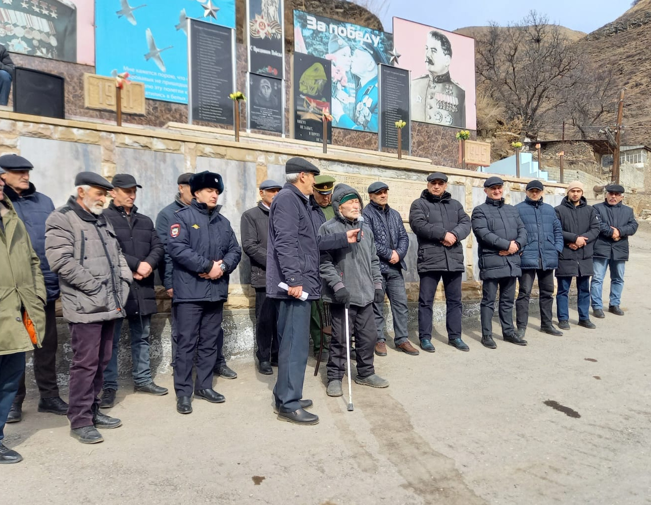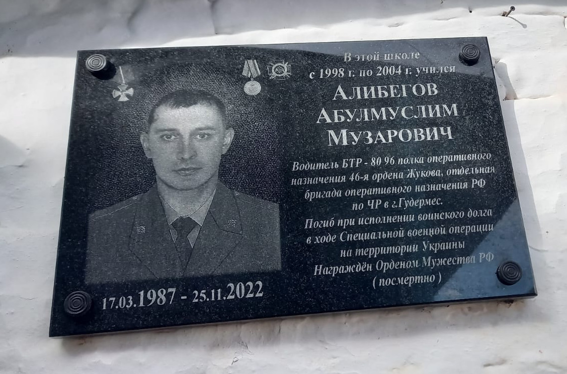 По поручению Главы Республики Дагестан С.А. Меликова в предверии праздника ко Дню Защитника Отечества работники ГБУ РД ЦСОН в МО Чародинский район 22 февраля 2023года посетили семьи мобилизованных участников СВО на Украине в селении Тлярощ Чародинского района , накануне состоялось и открытие мемориальной доски погибшего при исполнении воинского долга в ходе специальной военной операции на территории Украины Алибегова Абумуслима Музаровича Доску открыли в Тлярошской средней школе , где раньше учился Абумуслим. Он погиб при исполнении воинского долга в ходе специальной военной операции. «За проявленные доблесть и мужество А.М.Алибегов был награжден «Орденом Мужества Российской Федерации». 25 ноября 2022 года стал последним днем его жизни. В тяжелом бою попав под обстрел был смертельно ранен», – сообщили сослуживцы. В церемонии открытия мемориальной доски приняли участие глава района Магомедов М.А., военный комиссар Магомедов М. района , начальник ОМВД по Чародинскому району Саламов М. С.,ио директора ЦСОН Чародинского района Хизрибеков Х.М. , руководители других структурных подразделений района, главы сельских поселений, вдова – Алибегова С., родители и близкие родственники погибшего, ученики и педагогический коллектив Тлярошской средней общеобразовательной школы , практически все жители села присутствовали на открытии. «Пусть больше никто не погибает, а всем родным и близким погибших еще раз желаю терпения», -сказал Глава района и поблагодарил отца Абумуслима, Музара Алибеговича за воспитание такого сына, настоящего патриота. «Надо отдать должное нашим Героям- нашим, дагестанцам, которые достойно проявляют себя в тех местах, где они должны служить по- дагестански. Мы гордимся такими военнослужащими .Мы свидетели того ,что самый первый герой оказался из Дагестана . И наш брат Абумуслим оказался среди тех ,кто стал достоин ордена мужества. Мы всегда будем помнить о мужестве и отваге всех ребят , которые достойно сражаются на специальной военной операции на территории Украины» выразил директор школы Хизрибеков Г.Х. где учился Абумуслим. После закрытия школьной линейки в честь открытия мемориальной доски герою все жители и гости мероприятия перешли к памятнику павшим в Великой Отечественной Войны , где дочери Абумуслима совместно с дядей Гусейном открыли мемориальную плиту в памяти павших во имя живых. Отец погибшего Музар Алибегов выразил благодарность всем, кто принял участие в данном мероприятии по увековечиванию памяти о сыне. В завершении мероприятия старейшина села Кадыров Камалдин прочитал дуа за упокой Абумуслима и погибших сотоварищей, скорейшего завершения боевых действий, установления мира и возвращения всех ребят к своим семьям живыми и здоровыми.