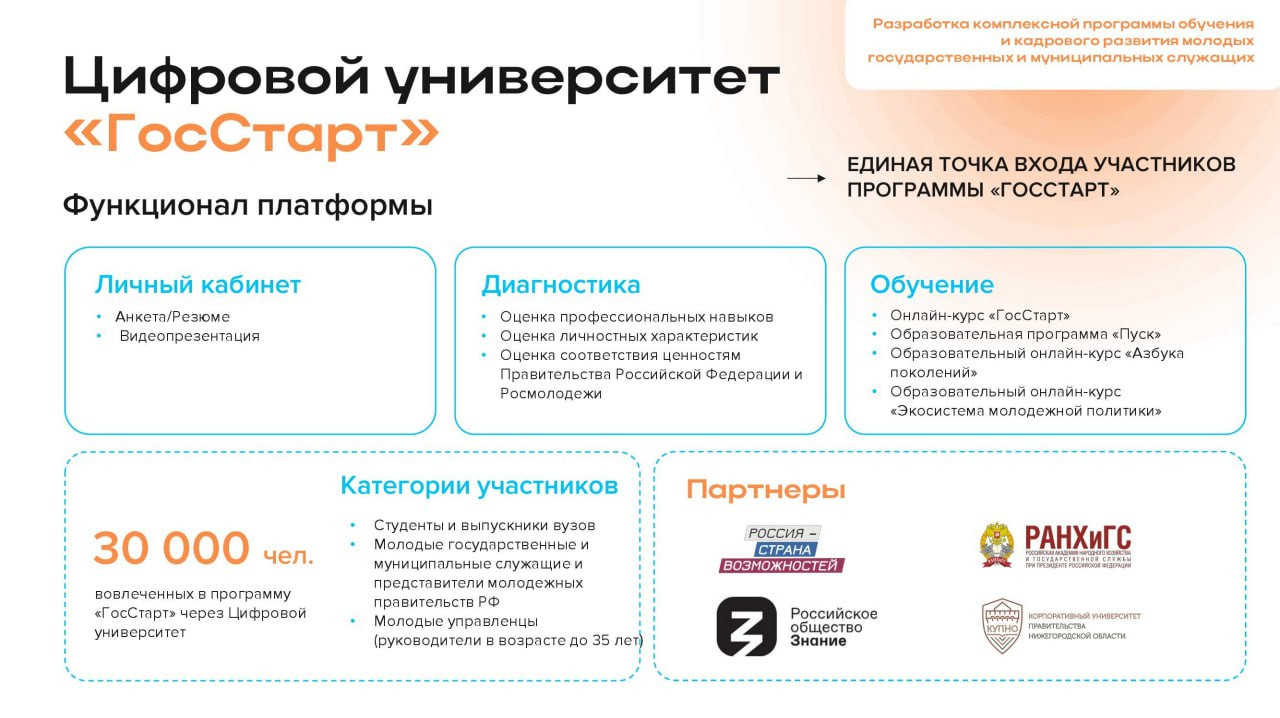 В России реализуется программа «ГосСтарт» направленная на повышение привлекательности государственной и муниципальной службы среди молодежи.