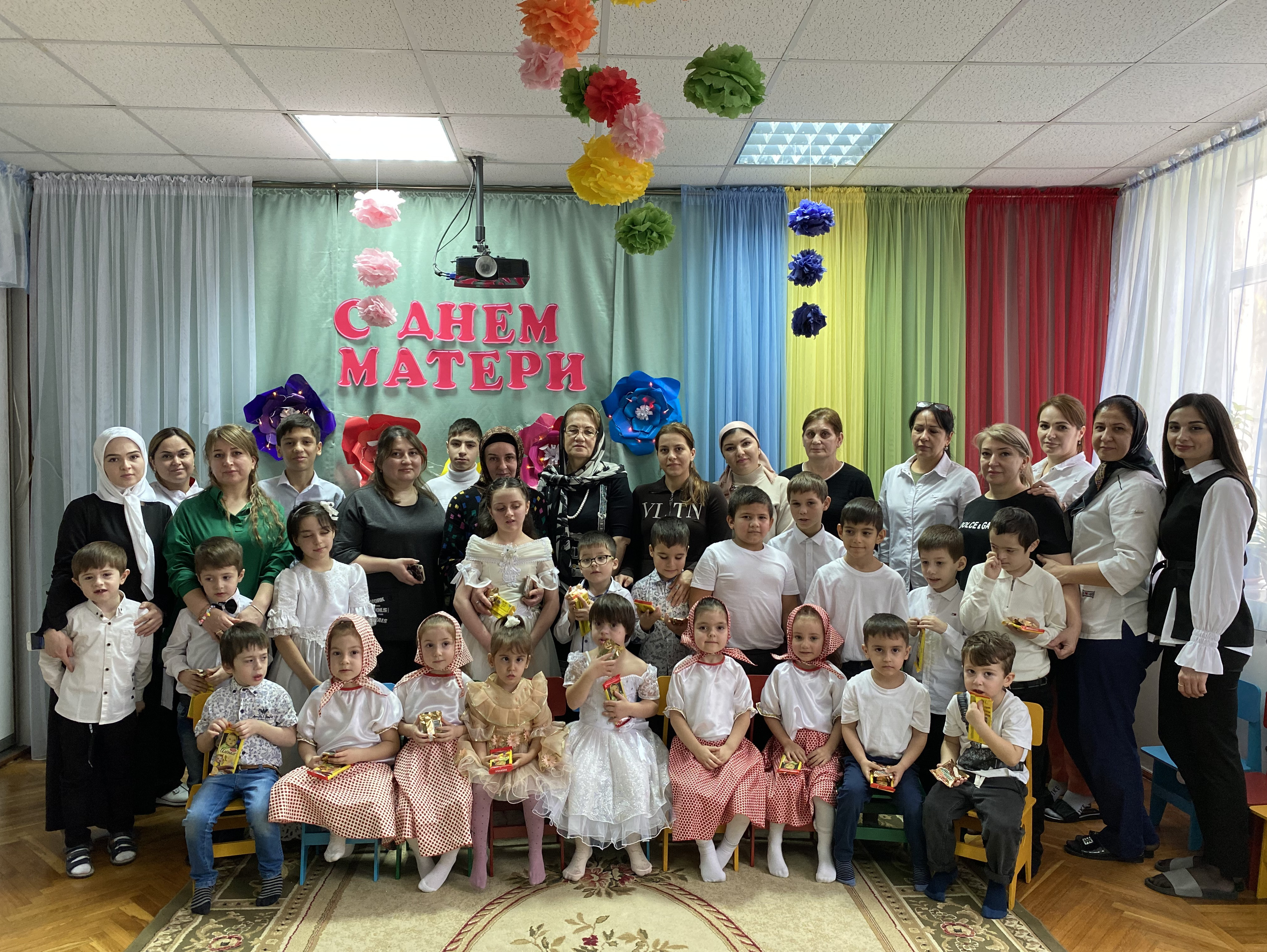 Самое прекрасное слово на земле – мама. Это первое слово, которое произносит человек, и звучит оно на всём мире одинаково нежно. В смешанной группе нашего Реабилитационного центра прошло праздничное мероприятие, посвящённое Дню Матери. Открыла праздник директор Алиханова С. А., которая поздравила всех с праздником и пожелала всего самого лучшего. В мероприятии принимали участие дети и родители, и работники Центра. Все поздравительные номера держались в секрете от мам, весь праздничный репертуар и оформление зала подготавливали тщательно и с хорошим настроением. В этот день прозвучали стихи, праздничные песни о маме, танцы и игры радовали сегодня всех присутствующих. Праздник продолжился выступлением веселого танца "Едем, едем..." А также дети рассмешили гостей озорными развлечениями. Ну, а как же можно было в такой день оставить слушателей без главной песни о маме. Исполнила песню наша воспитанница Зейналова Мадина, которая трогательным исполнением заставила всех прослезиться.