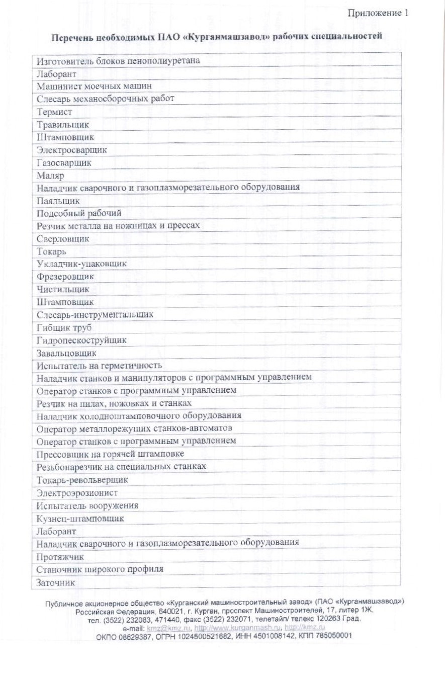 Вакансии в ПАО "Курганский машиностроительный завод"