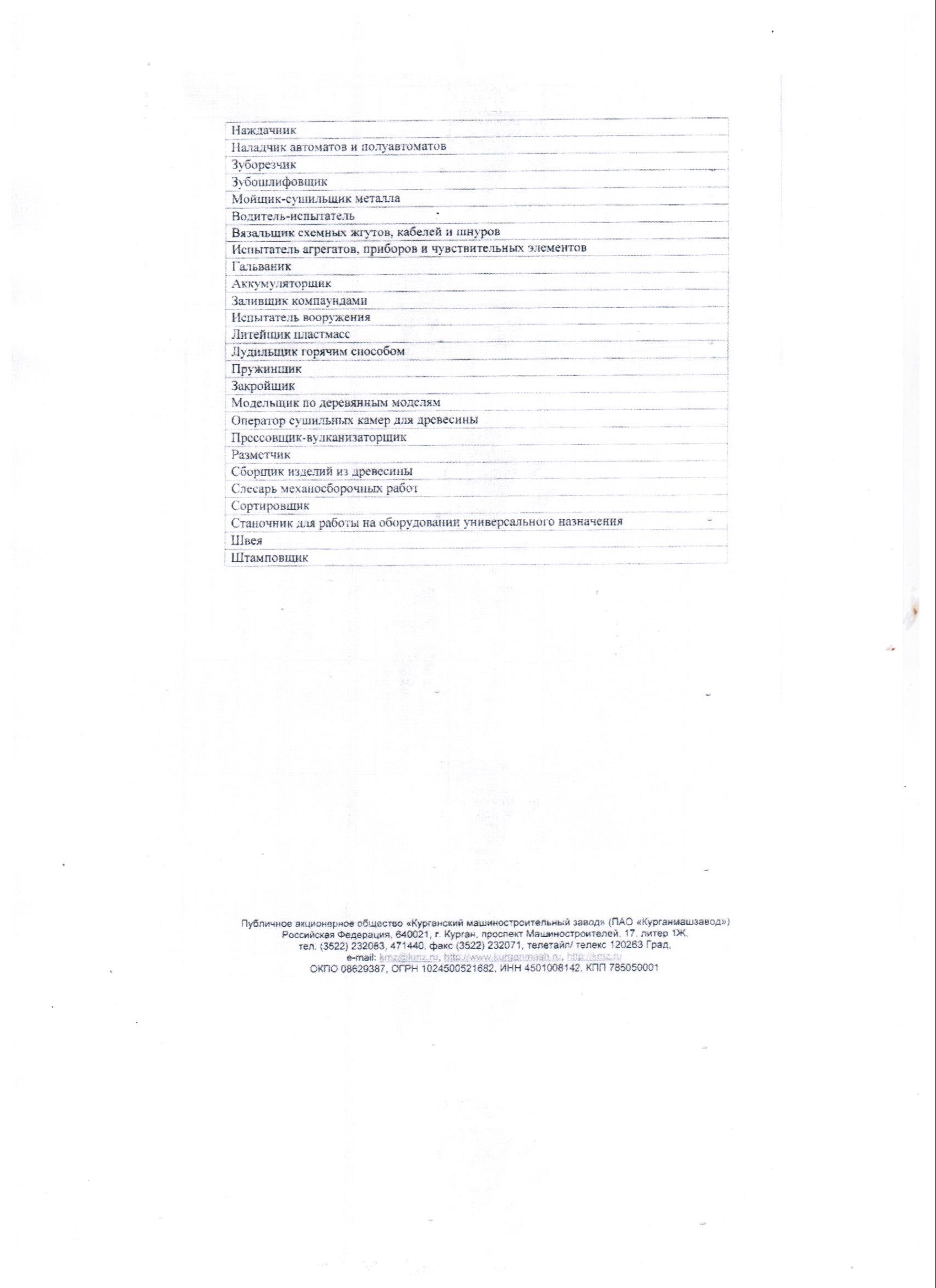 ВАКАНСИИ В ПАО "КУРГАНСКИЙ МАШИНОСТРОИТЕЛЬНЫЙ ЗАВОД"