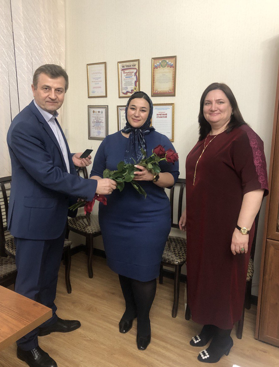 В канун Международного женского дня 8 марта в управлении социальной защиты Избербаша состоялось вручение удостоверения «Ветеран труда» начальнику группы дознания ОМВД России по городу Избербашу майору полиции, многодетной матери Людмиле Курбанисмаиловой. Людмила Нурдиновна имеет стаж работы в органах МВД более 20 лет, награждена медалями МВД России «За отличие в службе» трех степеней, а также многочисленными ведомственными и муниципальными почетными грамотами и благодарностями. Людмила умело сочетает обязанности матери и нелегкую службу в органах внутренних дел. С супругом Тагиром - ветераном боевых действий, пенсионером МВД, а ныне руководителем организации коммунального хозяйства - воспитывают четверых прекрасных детей, которые отлично учатся и принимают активное участие в жизни школы и дошкольных учреждений. В Год семьи желаем многодетной интернациональной семье Курбанисмаиловых успехов во всех начинаниях, семейного благополучия и процветания !
