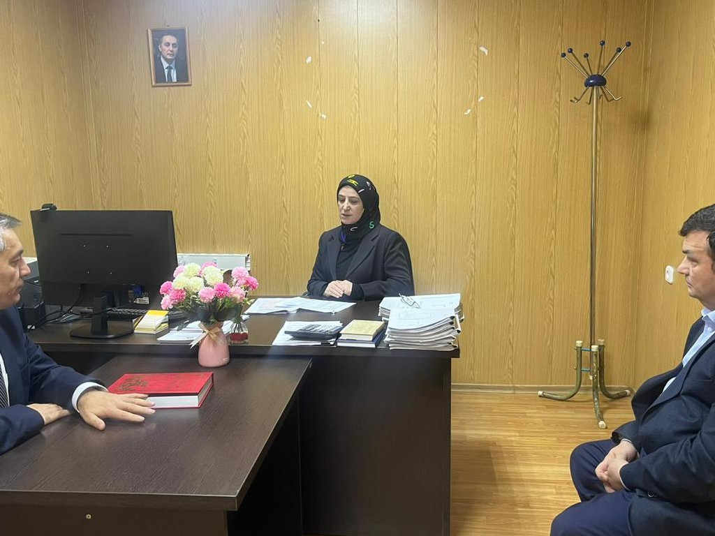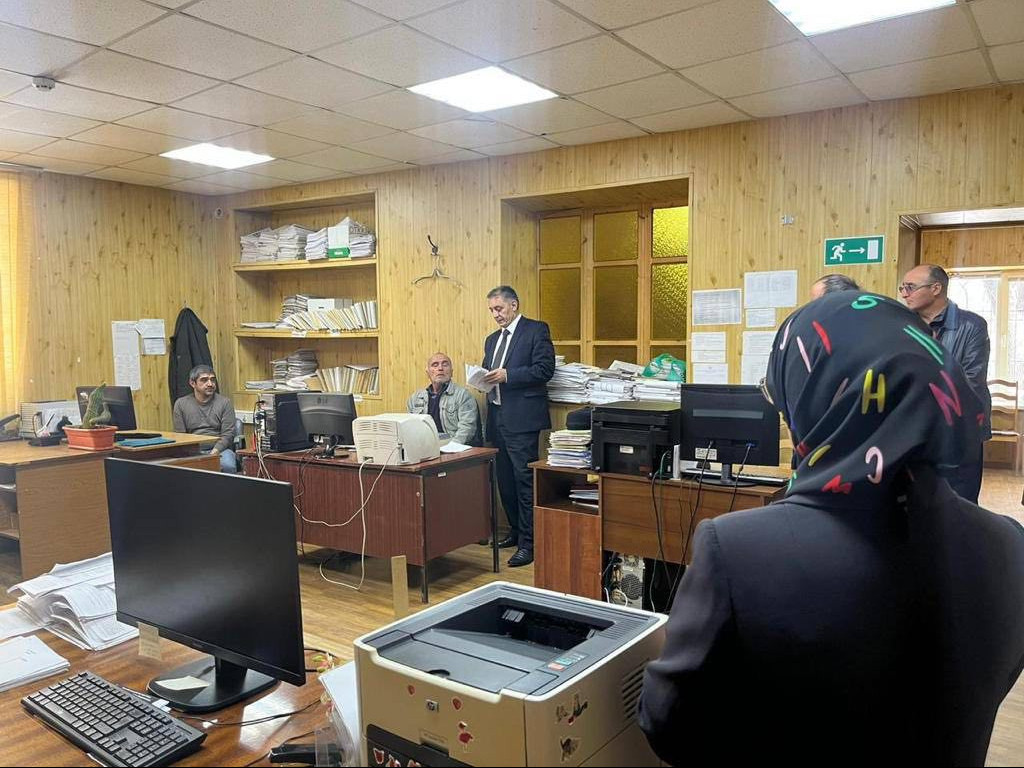 Руководитель социального ведомства провел общее собрание, со всеми работниками подведомственных учреждений, в здании центра социального обслуживания населения. После посетил здание управления социальной защиты, проверил состояние помещений здания, рабочие условия специалистов. Провел рабочее совещание с аппаратом управления, отметил необходимость качественного исполнения должностных обязанностей специалистов управления. Совещание прошло продуктивно, были заданы вопросы и получены ответы. Проверил работу телефонов "горячей линии". Министр заявил о том, что " горячая линия" всегда должна отвечать на звонки граждан.