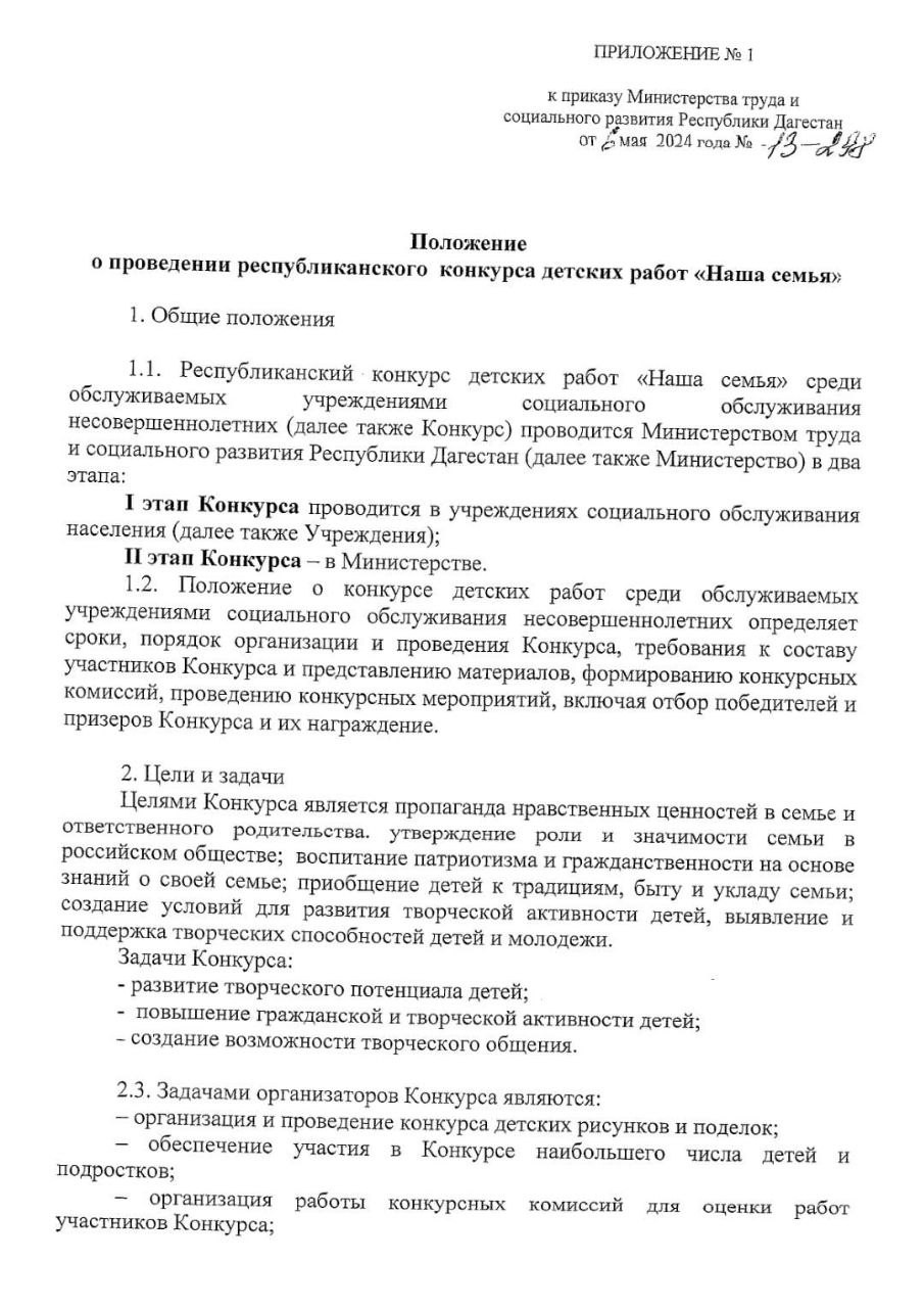 ?Во исполнение приказа Министерства Труда и Социального Развития Республики Дагестан №13-298 от 6 мая 2024 года "О проведении республиканского конкурса детских работ " Наша семья" в ГБУ РД ЦСОН в МО "Ахвахский район" проводится конкурс среди детей и подростков, обслуживаемых в учреждении от 8 до 18 лет.