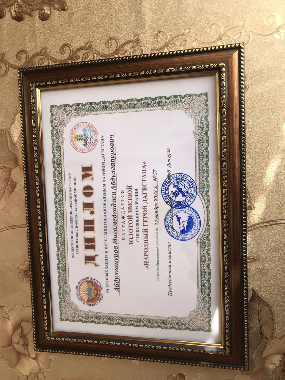 Военнослужащий из Хунзахского района Абдулгапуров Магомедгаджи Абдулгапурович , за выдающиеся заслуги перед многонациональным народом Дагестана, награжден государственной наградой -- Золотой звездой «Народный герой Дагестана».