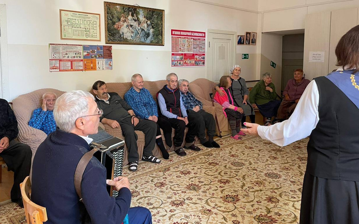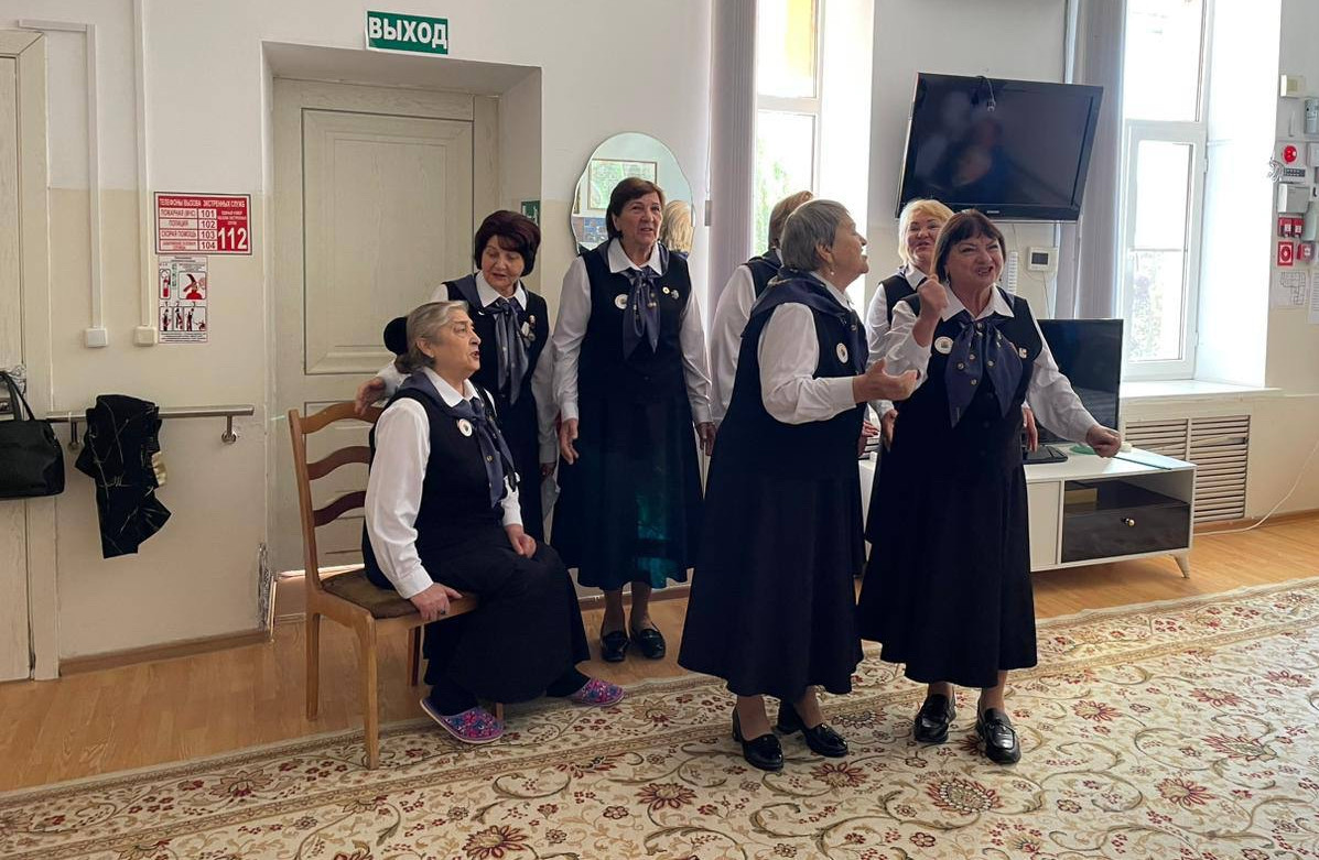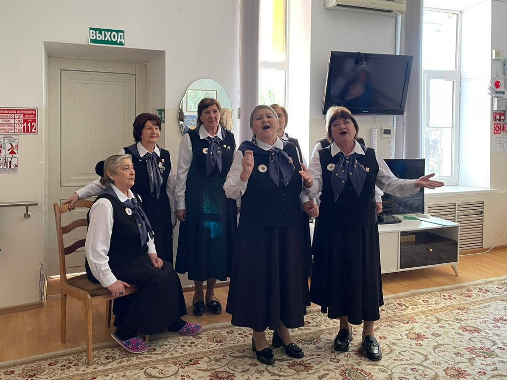 Сегодня в отделении временного пребывания граждан пожилого возраста и инвалидов, председатель совета ветеранов войны и труда Старчак В. И. и вокальная группа "Вдохновение" организовали маленький праздник для подопечных. Ветераны исполнили душевные песни и весёлые частушки. Мероприятие прошло в уютной атмосфере, а улыбки бабушек и дедушек стали ценной наградой для выступающих. После концерта каждому постояльцу были вручены сладкие угощения от хозяйки кондитерской выпечки "Мараккеш" Султаналиевой Патимат Гусейновны.