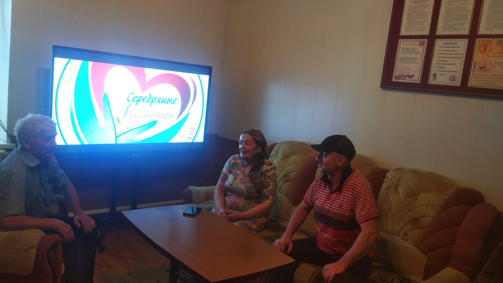 Демонстрация на широком экране видеороликов о серебряном волонтерстве для самоопределения и популяризации семейных ценностей.