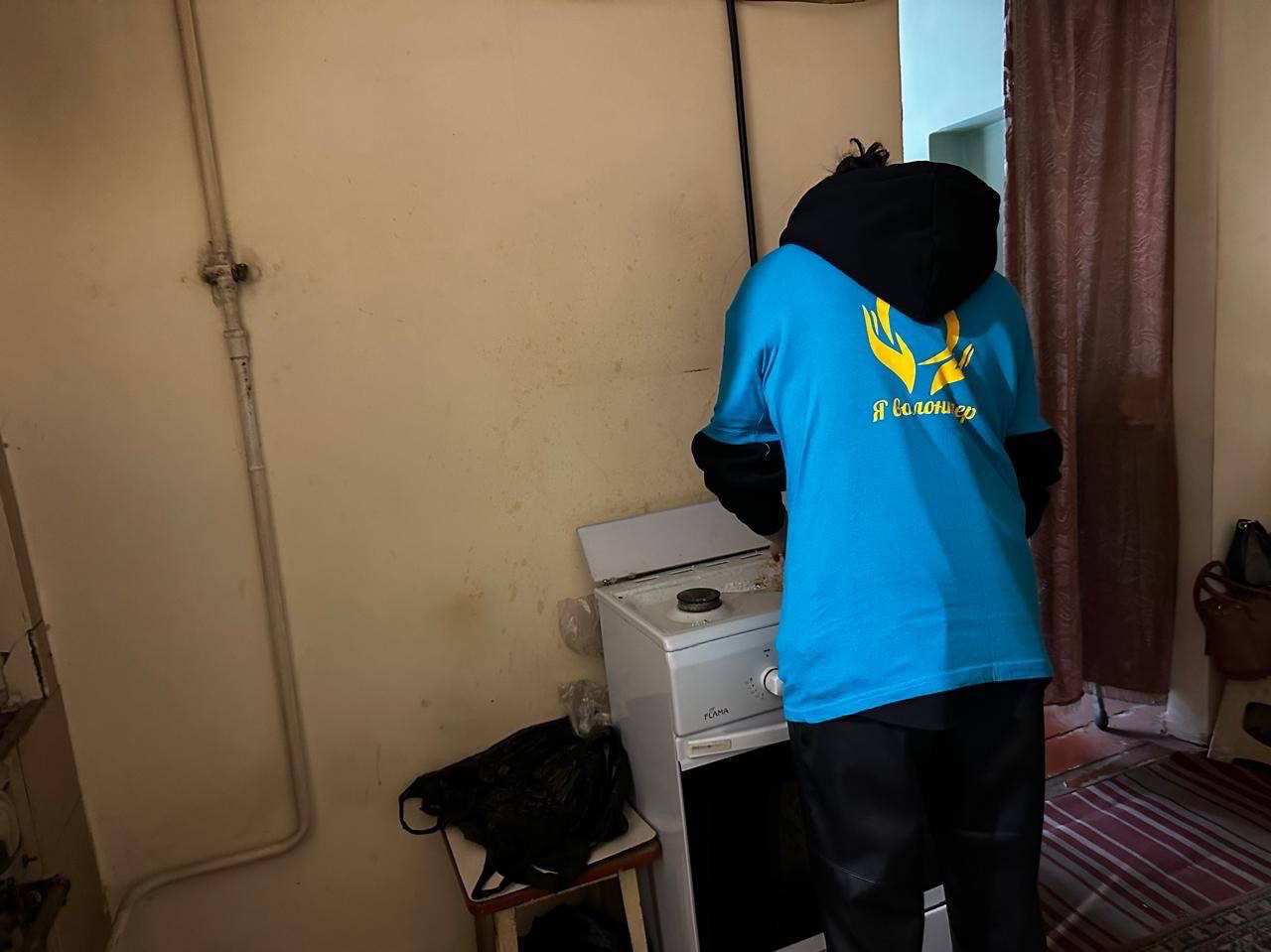 Студенты волонтеры посетили одиноко проживающего подопечного Центра и провели полную уборку квартиры.