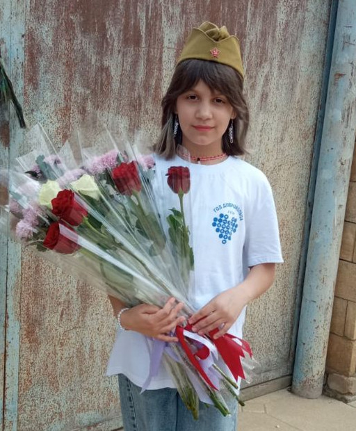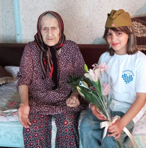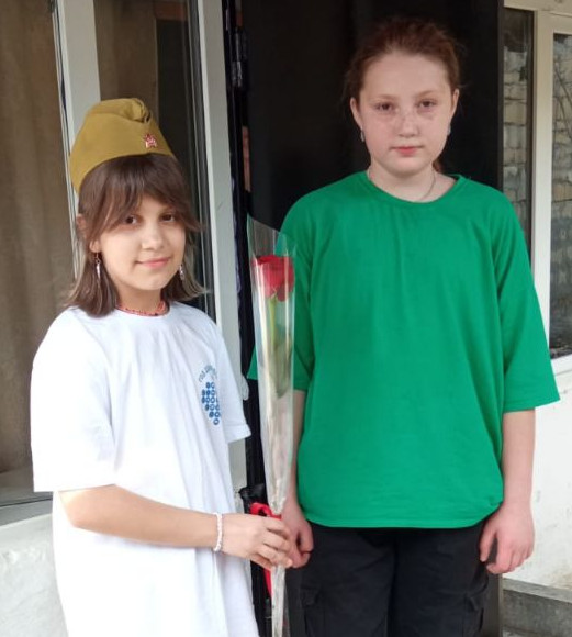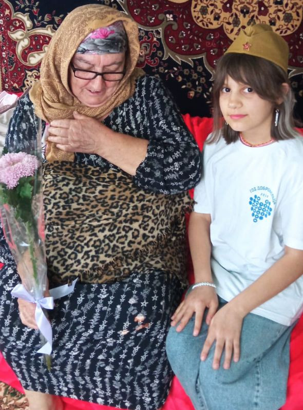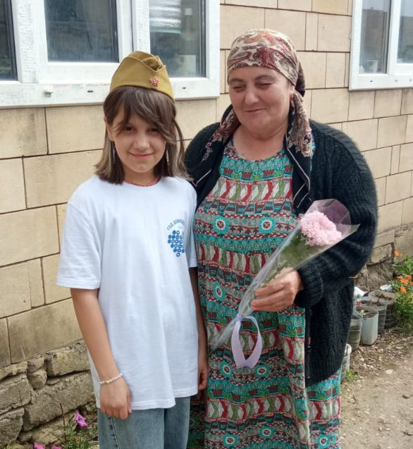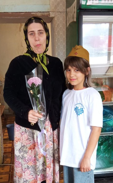 В канун празднования Дня Победы волонтёр отряда "Милосердие" Идрисова Марьям под руководством специалиста по соц.работе Идрисовой А. посетили семьи мобилизованных  и семью погибшего на СВО в  с.Герга.