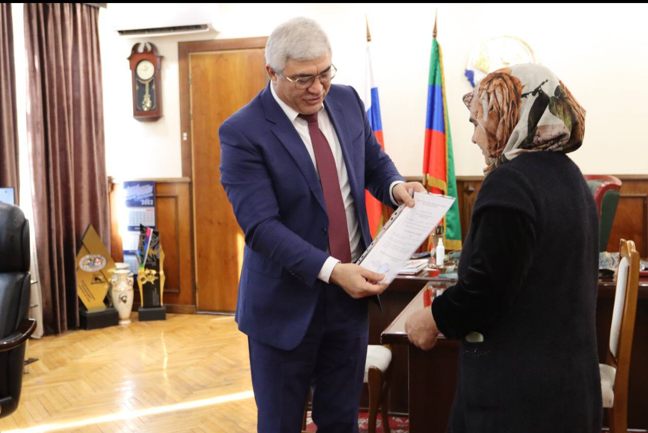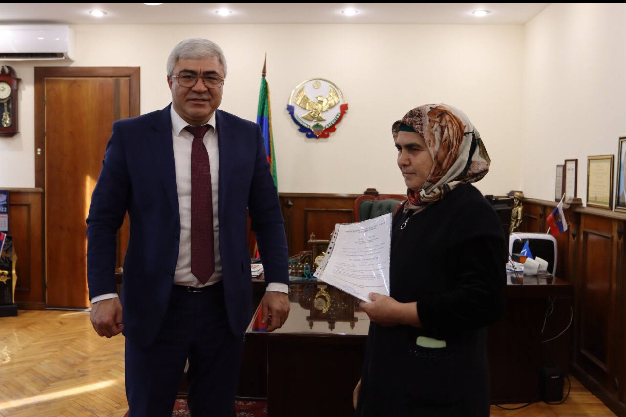 24 октября 2022 года в торжественной обстановке в здании Администрации г.Буйнакска прошло вручение свидетельства о предоставлении безвозмездной субсидии на приобретение жилья с участием главы города Исламудина Нургудаева и Директора УСЗН в МО «город Буйнакск» Рашадова Р.М. так же начальника отдела соц.поддержки Солтановой З.П.