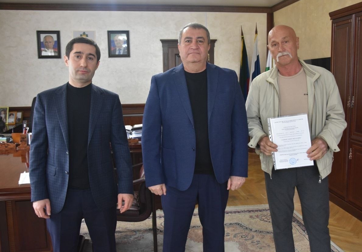 Сегодня, 17 мая, директор ГКУ РД УСЗН в МО «Дербентский район» Алиев Темирбек Феликсович совместно с Главой Дербентского района Мавсумом Рагимовым вручили свидетельства о предоставлении безвозмездной субсидии на приобретение жилья ветеранам боевых действий на территории Республики Афганистан. Рамазанов Камалетдин Мамедрасулович, Селимов Селим Абдуллаевич, Алиев Али Абубакарович и вдова участника боевых действий в Афганистане Абдуллаева Гюрикиз Исрафиловна стали счастливыми обладателями заветных сертификатов, позволяющих им улучшить жилищные условия. Алиев Темирбек поздравил собравшихся с прекрасным событием в их жизни! Пожелал здоровья, успехов и мирного неба над головой! В свою очередь, ветераны боевых действий поблагодарили за оказанное внимание со стороны Министерства труда и социального развития РД, а также директора ГКУ РД УСЗН в МО «Дербентский район» и главу администрации Дербентского района.