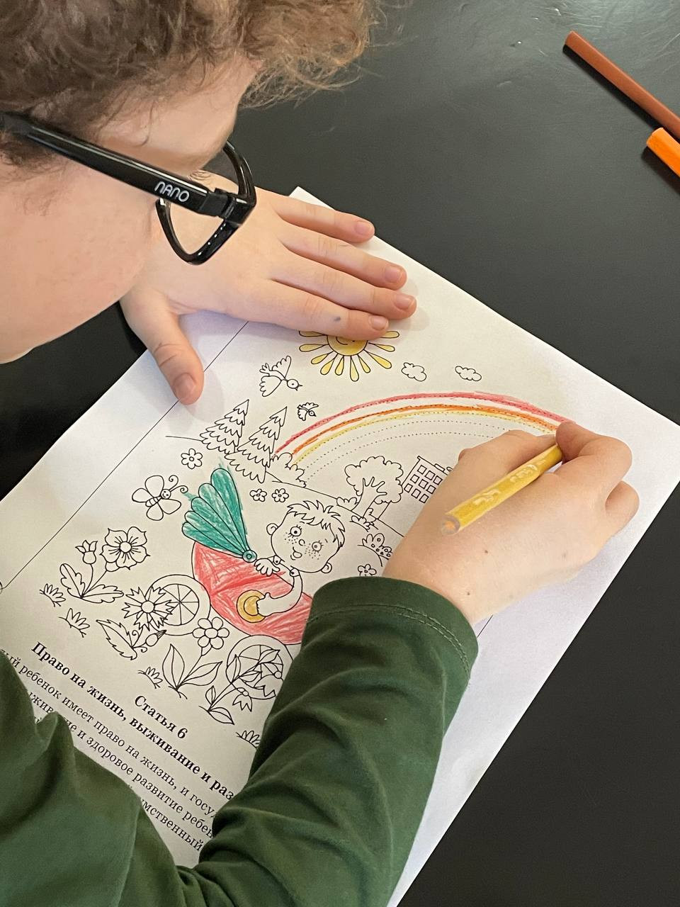 Специалисты по работе с семьей подготовили брошюры, содержащие информацию о правах ребёнка. Дети попытались на рисунках- раскрасках показать свои знания о правах человека, о правах ребёнка.