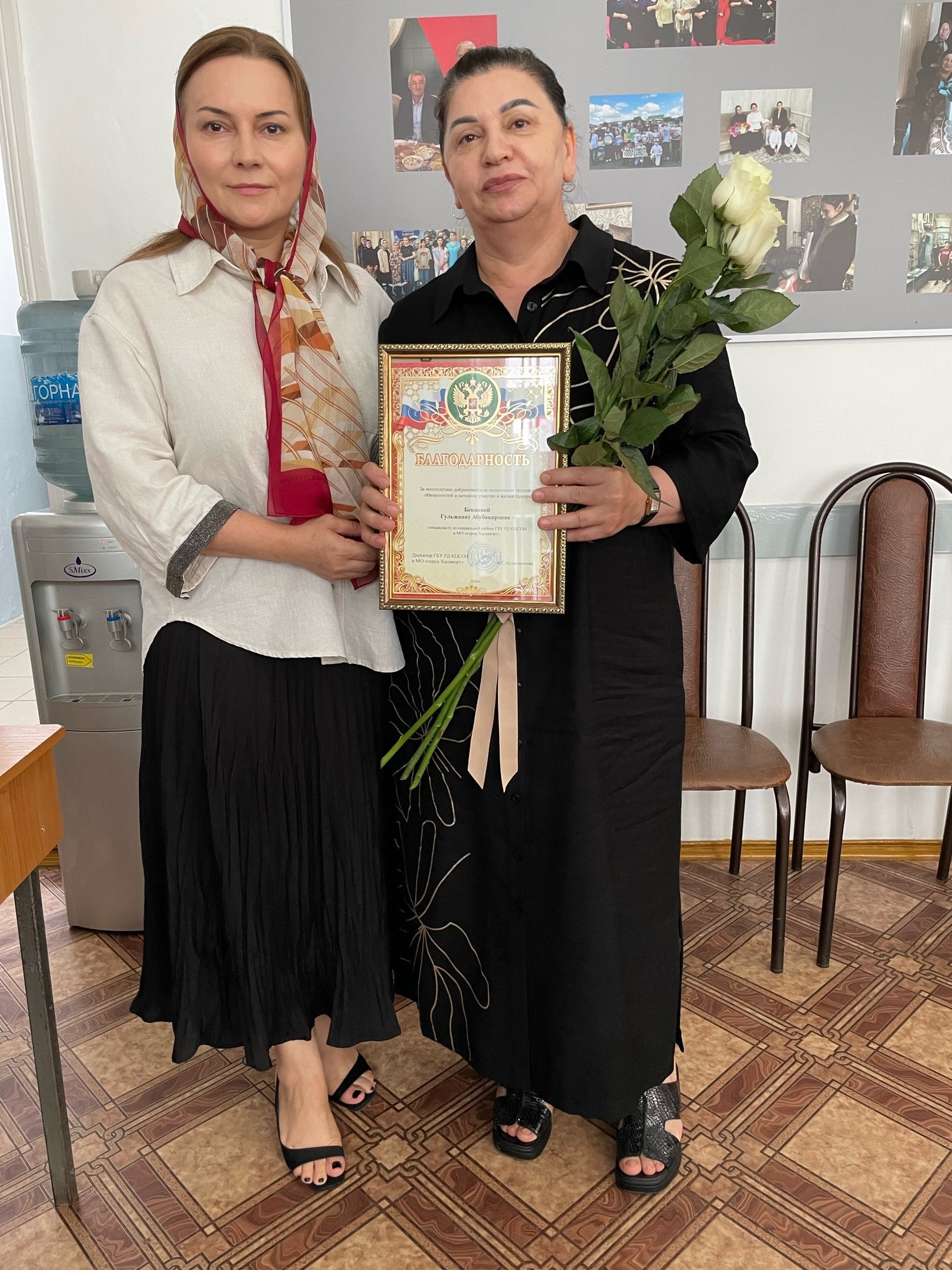 Сегодня директор Комплексного центра социального обслуживания населения г. Хасавюрт Асият Сайгидрасуловна совместно с руководителем благотворительного фонда "Инсан" Багавдиншаихом Мусашаиховичем, вручили благодарственные письма работникам центра, выразили признательность за благородный труд, доброту и заботу.