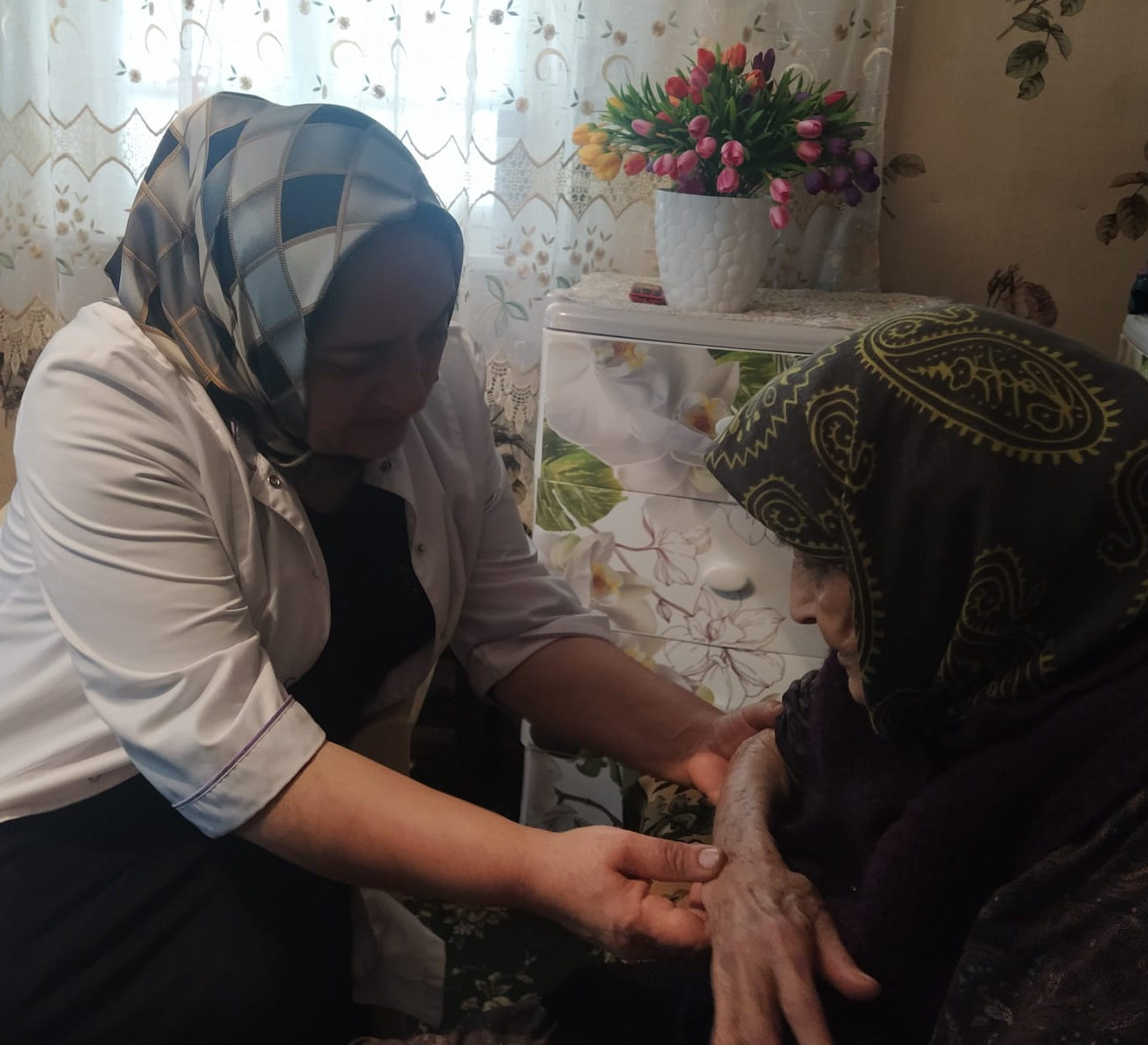 21 сентября 2022 г. по графику выездов мобильной бригады выехали в с.Алмак Казбековского района. Заведующая отделением социального обслуживания на дому Гасанова А. провела для социальных работников семинар -занятие на тему " права и обязанности получателей социальных услуг ". После семинара провели подворный обход по подопечным. Проверили качество предоставления социальных услуг, график посещения социальных работников, также условия их проживания. Всего были охвачены 6 получателей социальных услуг. Во время обхода, также были оказаны срочные социальные услуги в виде одежды, предметов первой необходимости и консультативную помощь 11 гражданам, которые нуждались в помощи. Также по инновационной технологии "Санаторий на дому" были оказаны медицинские услуги 2 вдовам участников ВОВ.
