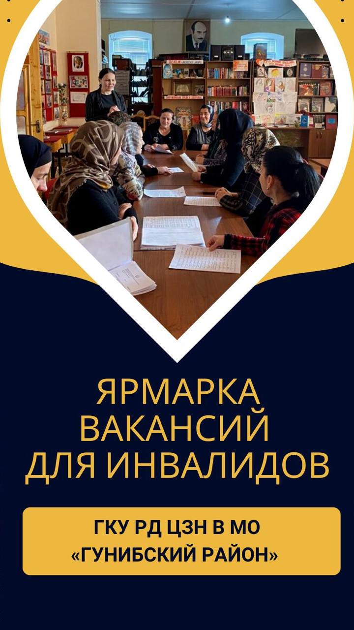 Центром занятости населения в МО "Гунибский район", в централизованной районной библиотеке 2 декабря 2022 г. проведено мероприятие – ярмарка вакансий, приуроченное к Международному дню инвалидов, который празднуется 3 декабря.