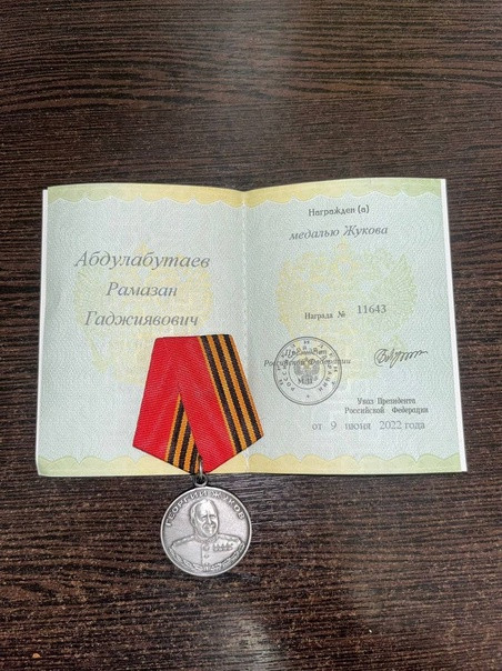 За проявленное мужество и храбрость при штурме города Бахмут награждён медалью "Жукова" Абдулабутаев Рамазан Гаджиявович