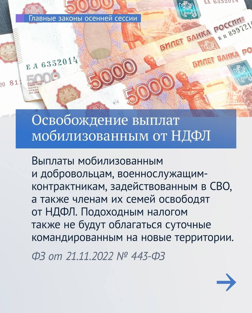 Законы  осенней сессии ,посвященные поддержке мобилизованных