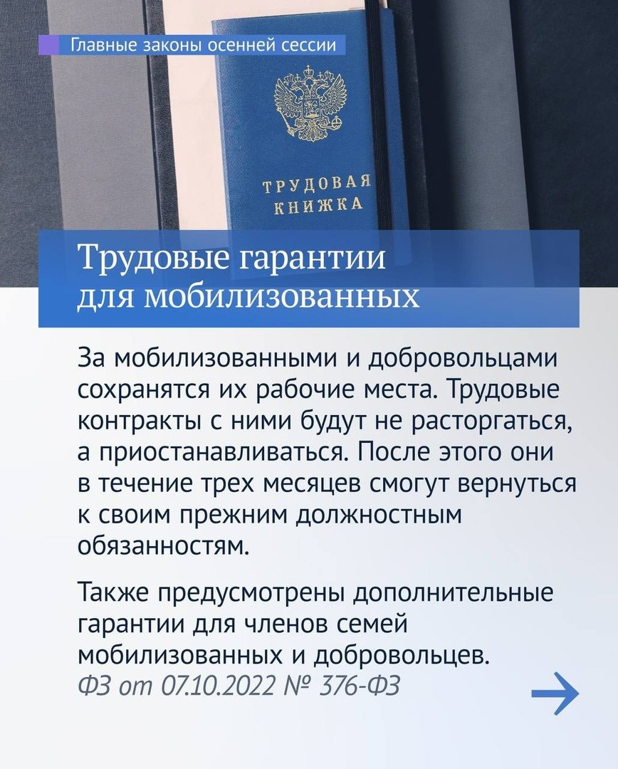 Законы осенней сессии, посвященные поддержке мобилизованных