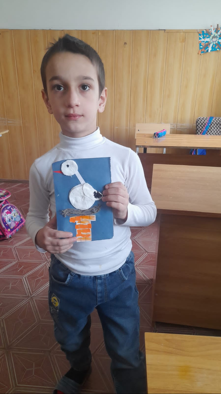 Во время занятия специалист по социальной работе рассказала детям об этой птице: аист – белая большая птица с черными концами крыльев, длинным красным клювом, длинной шеей и длинными ногами, питается она лягушками и жабами. Воду для своих птенцов несет в клюве, у них нет голоса, и они не умеют петь, вместо звуков они щелкают своими клювами и это прищелкивание разносится очень далеко. Дети закрепили свои знания и узнали много нового и интересного о птице аист. После рассказа приступили к выполнению своей поделки.