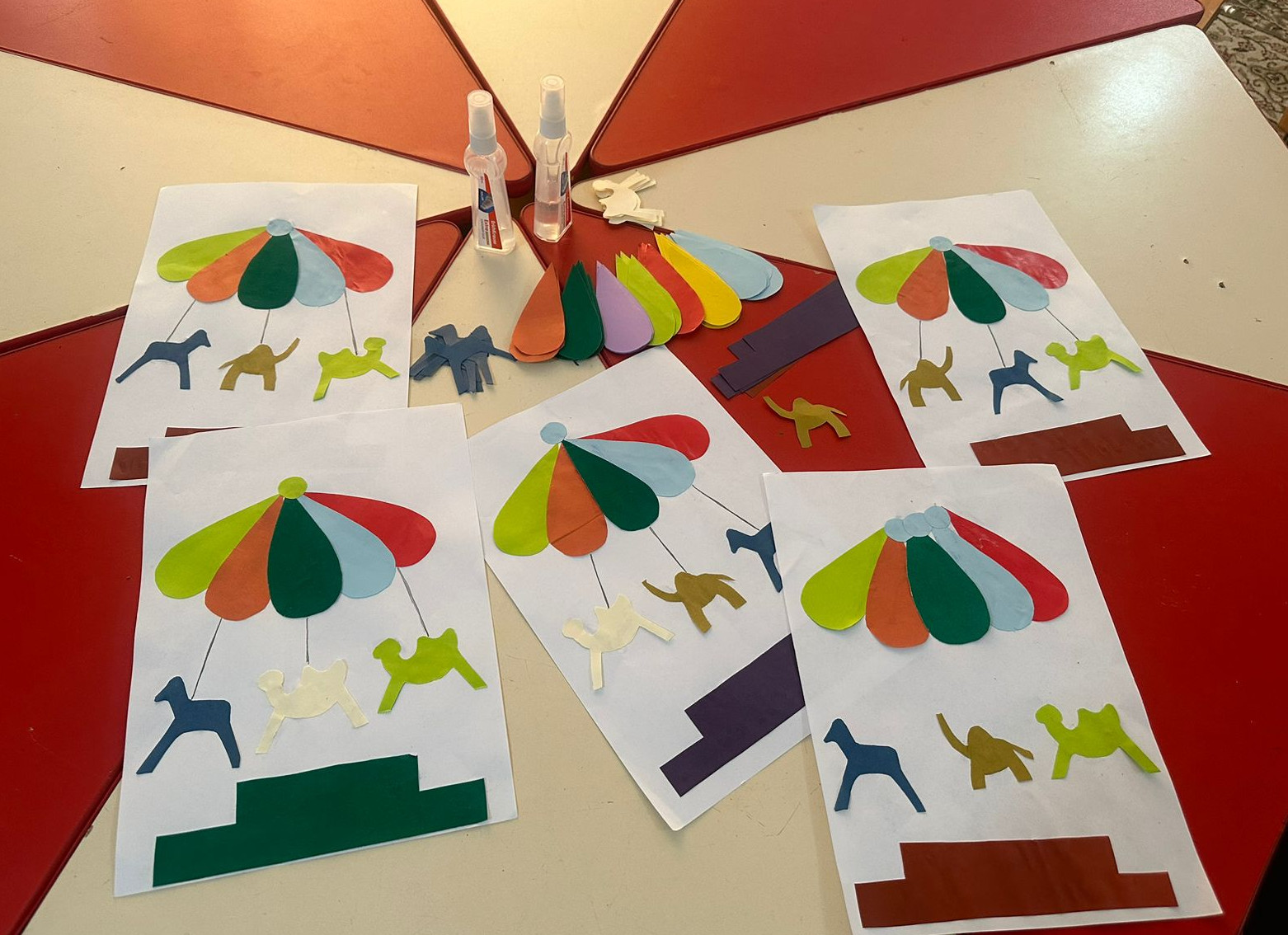 " Качели - карусели".  Цель: Учить детей создавать сложную композицию из вырезанных элементов. Познакомить с рациональным способом вырезания овала из прямоугольника, сложенную дважды пополам. Формировать умение располагать вырезанные формы на листе в определённом порядке и наклеивать в соответствии с сюжетом.