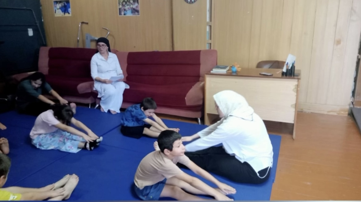 Инструктор по физическому воспитанию Джамалдинова Р.Ш. и медсестра Джавтханова Р.А. провели совместное занятие «Осанка».
