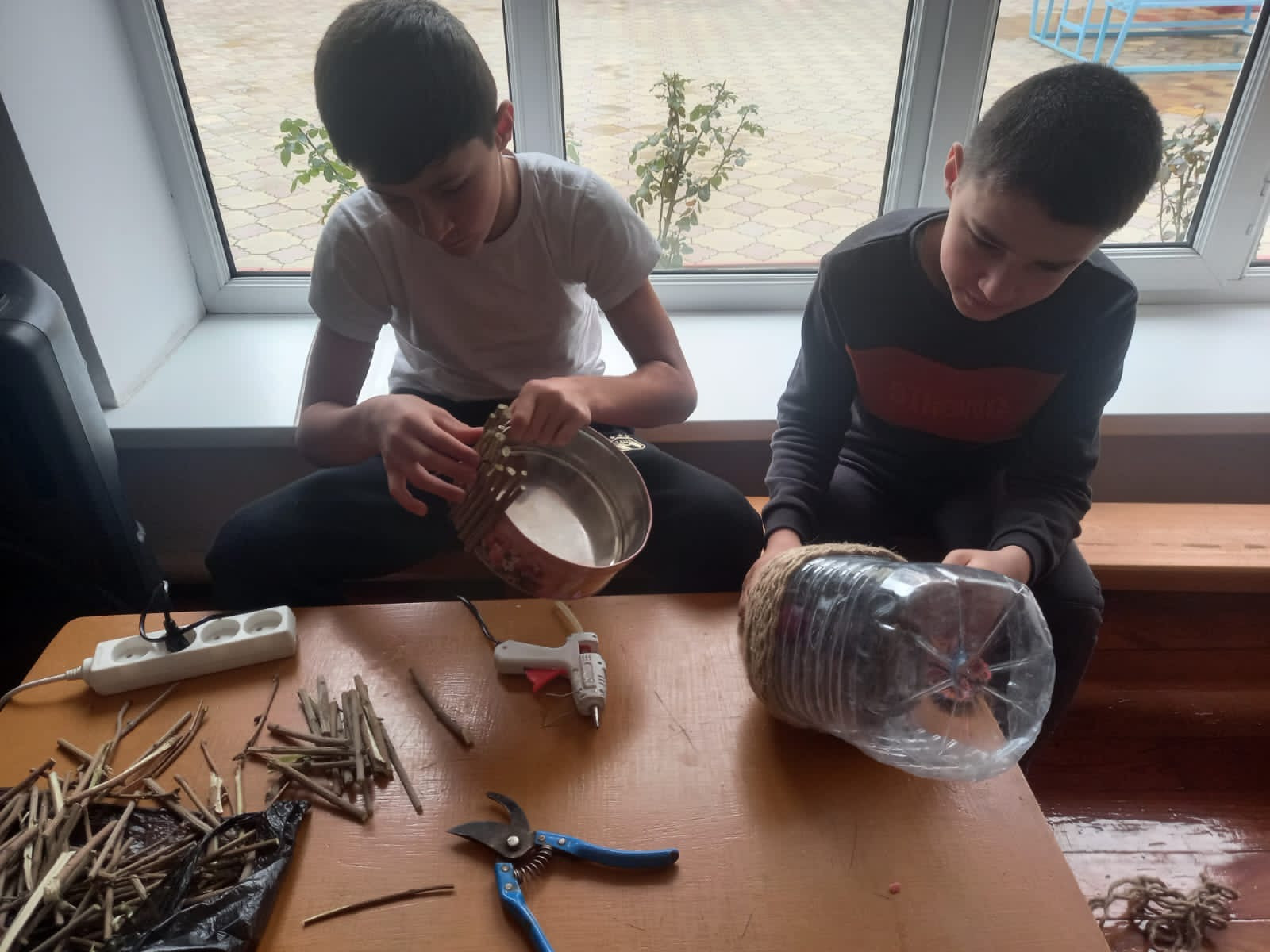 Дети изготавливали кормушки для птиц ,используя подручный материал.