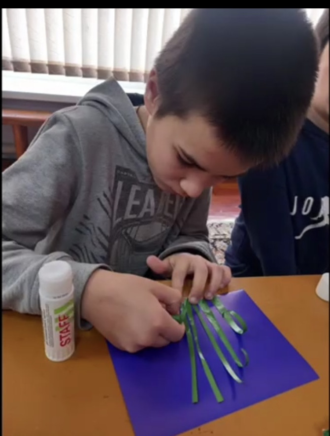 Дети изготавливали поделки из цветной бумаги «Подснежники».