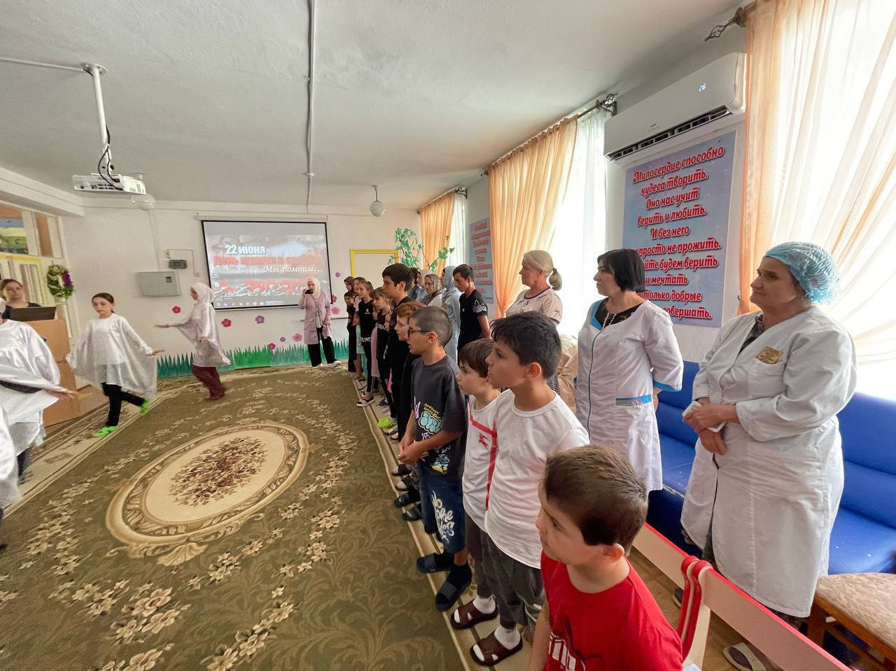 22 июня 1941 года- одна из самых печальных дат в истории России- день начала Великой Отечественной войны. Ведущая ознакомила детей с историей начала ВОВ. Был просмотрен познавательный видеоклип. Подопечные центра исполнили танец под сопровождение песни «Журавли» которую исполняли коллектив центра. Прочитали стихотворение- реквием «Помните». Коллектив и подопечные центра приняли участие во Всероссийской акции «Минута молчания», в память о погибших в ВОВ.
